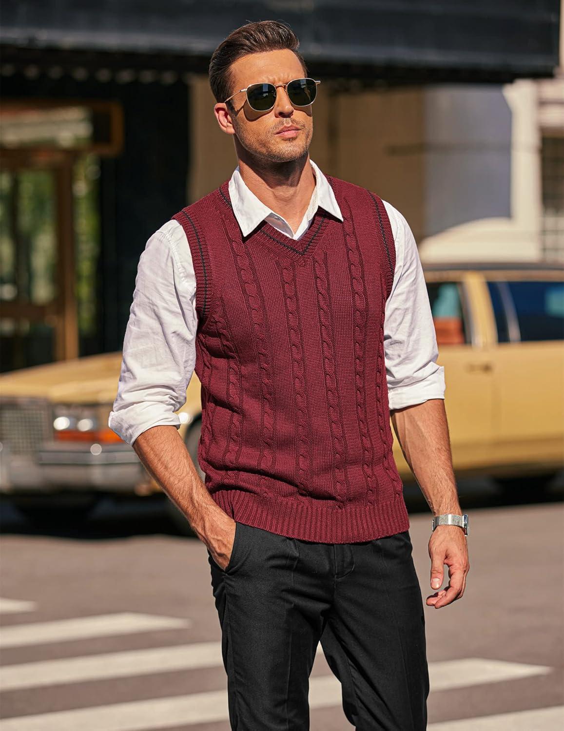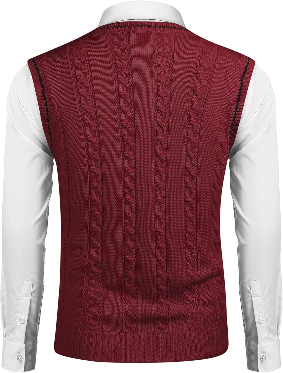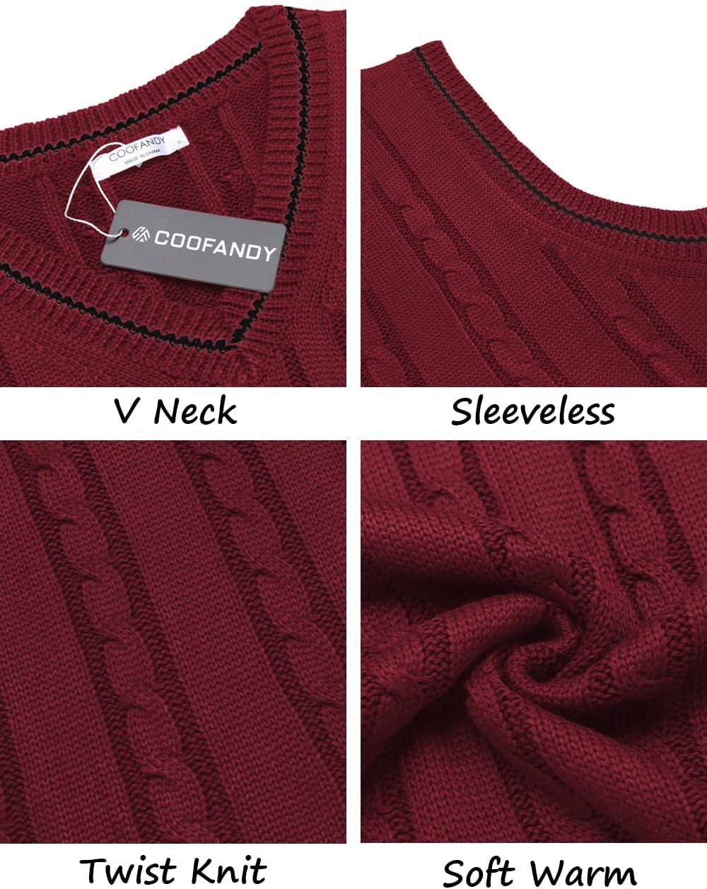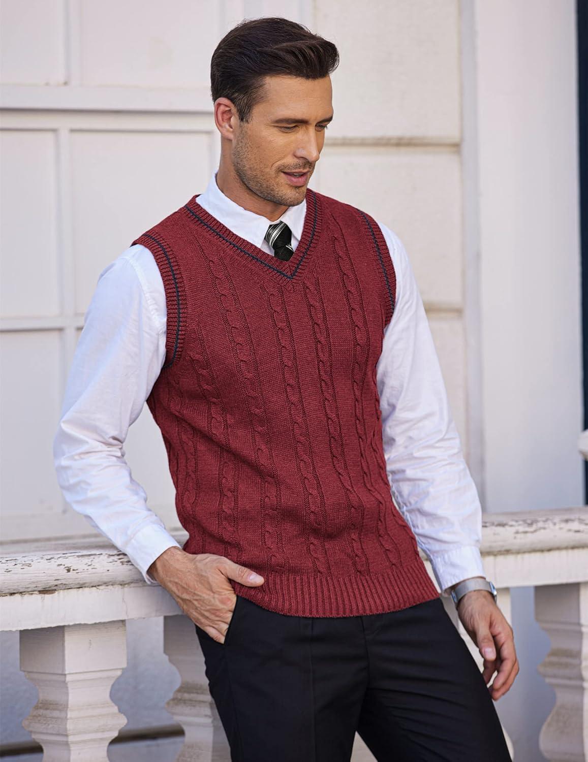 COOFANDY Men's Sweater Vest V Neck Slim Fit Casual Sleeveless Twisted Knitted Pullover Sweater(Wine Red)