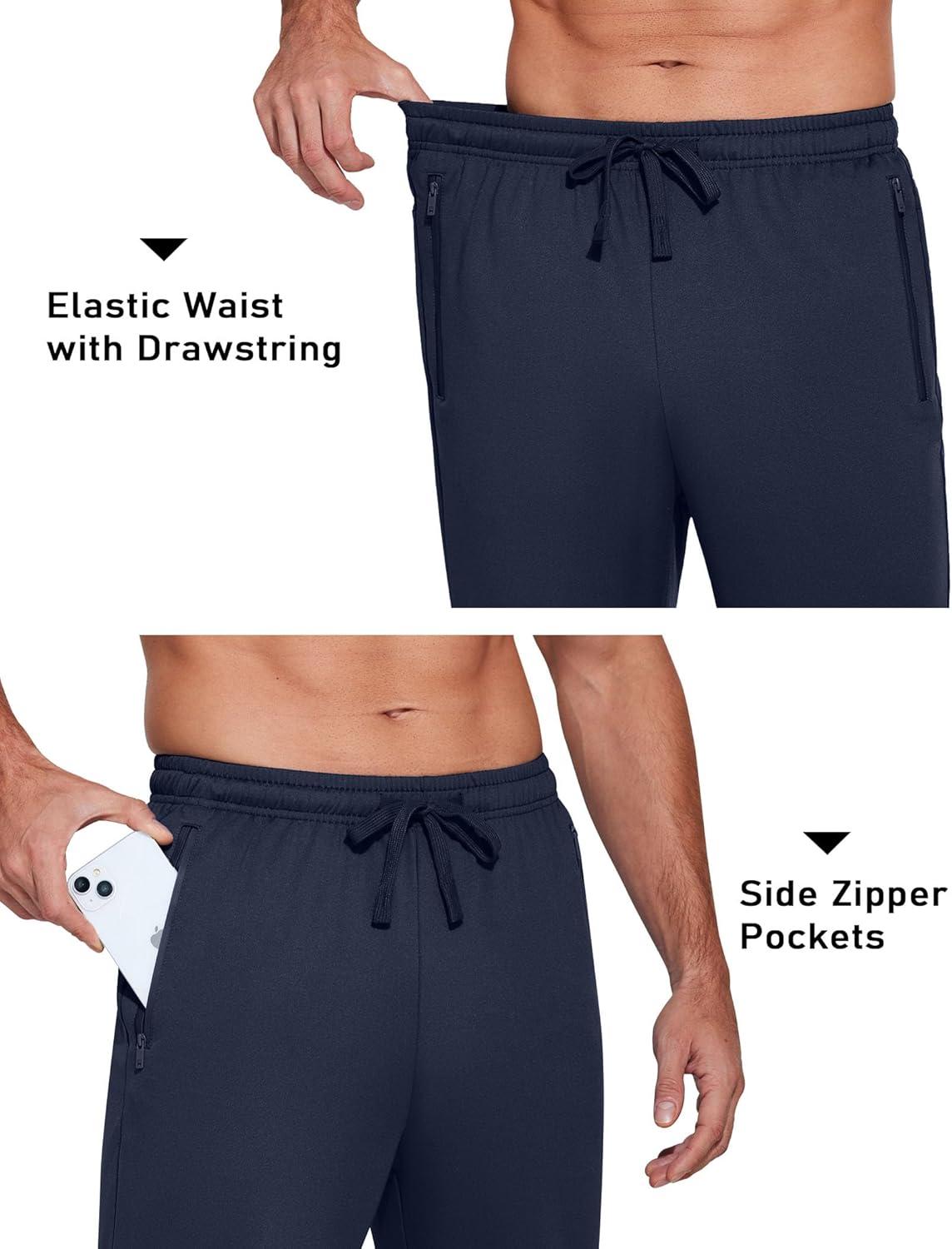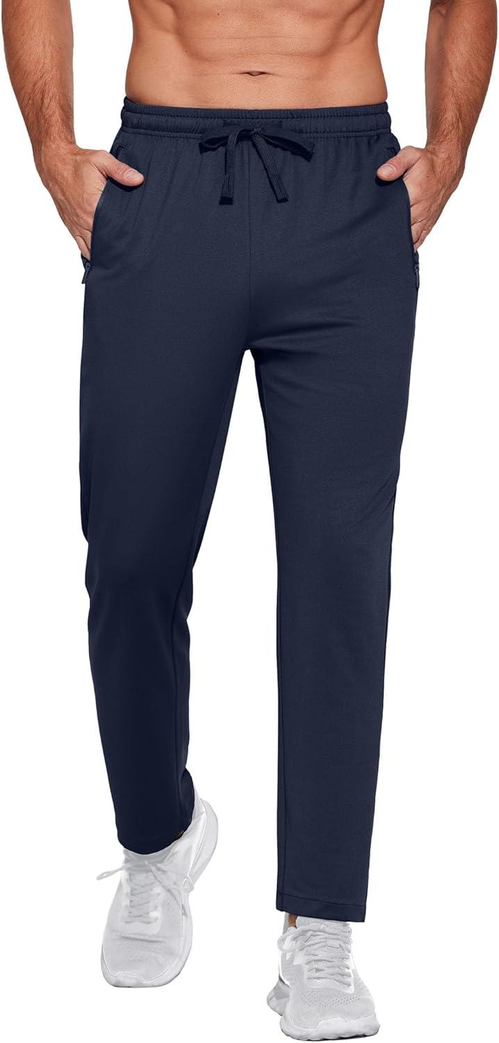 COOFANDY Men's Sweatpants Open Bottom Lightweight Athletic Running Joggers Gym Workout Pants with Zipper Pockets(Navy Blue)