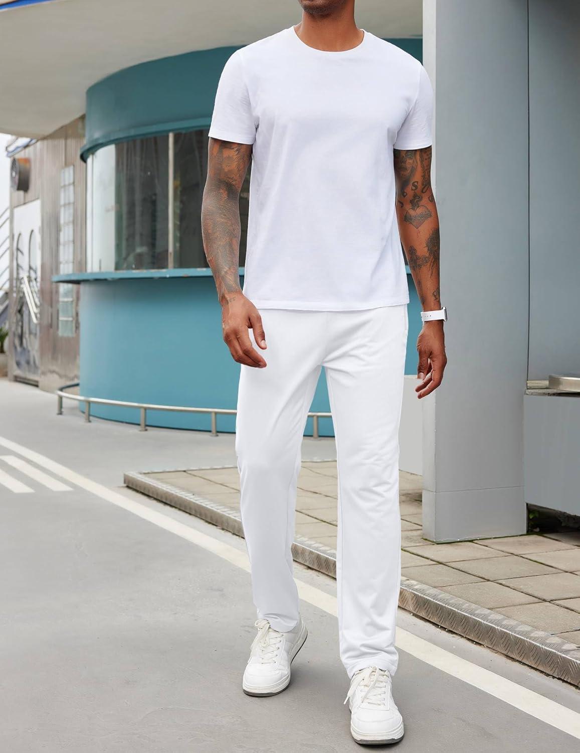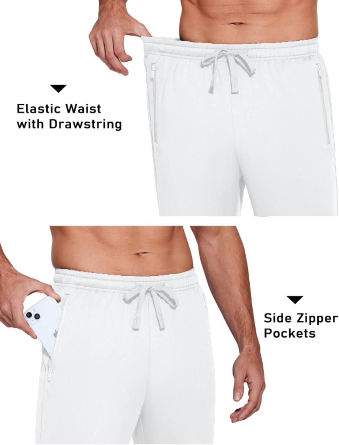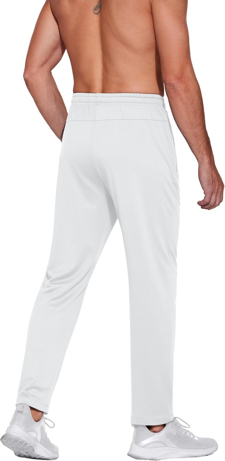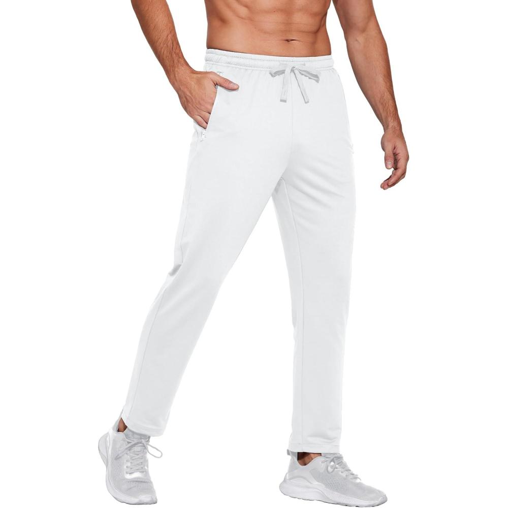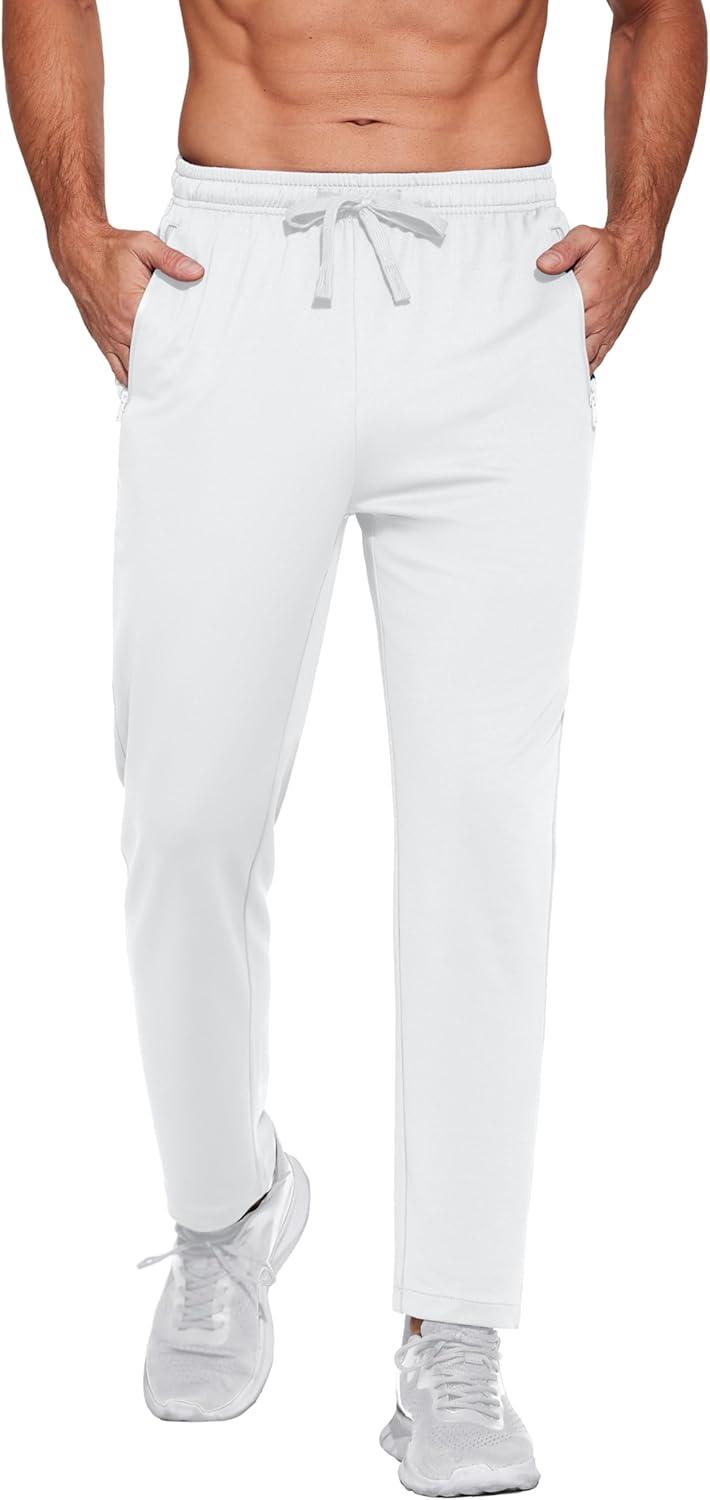 COOFANDY Men's Sweatpants Open Bottom Lightweight Athletic Running Joggers Gym Workout Pants with Zipper Pockets(White)