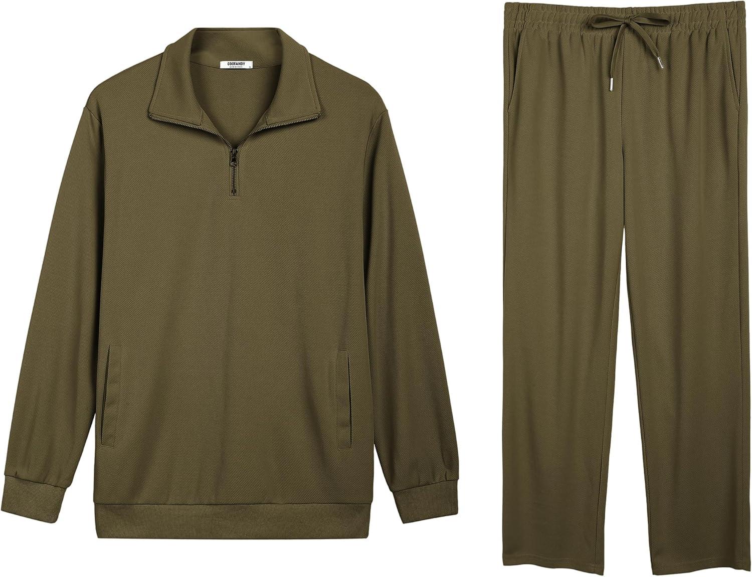 COOFANDY Men's Sweatsuits 2 Piece Set Quarter Zip Pullover with Wide Leg Sweatpants Matching Tracksuit(Olive Green)
