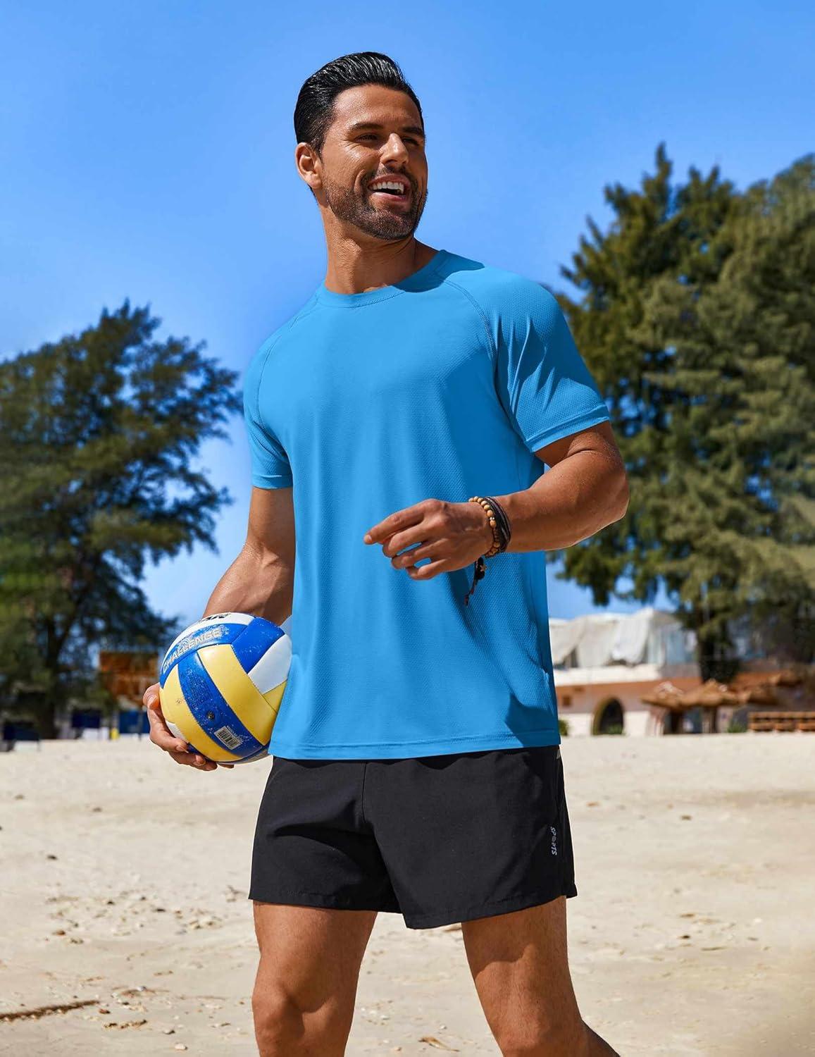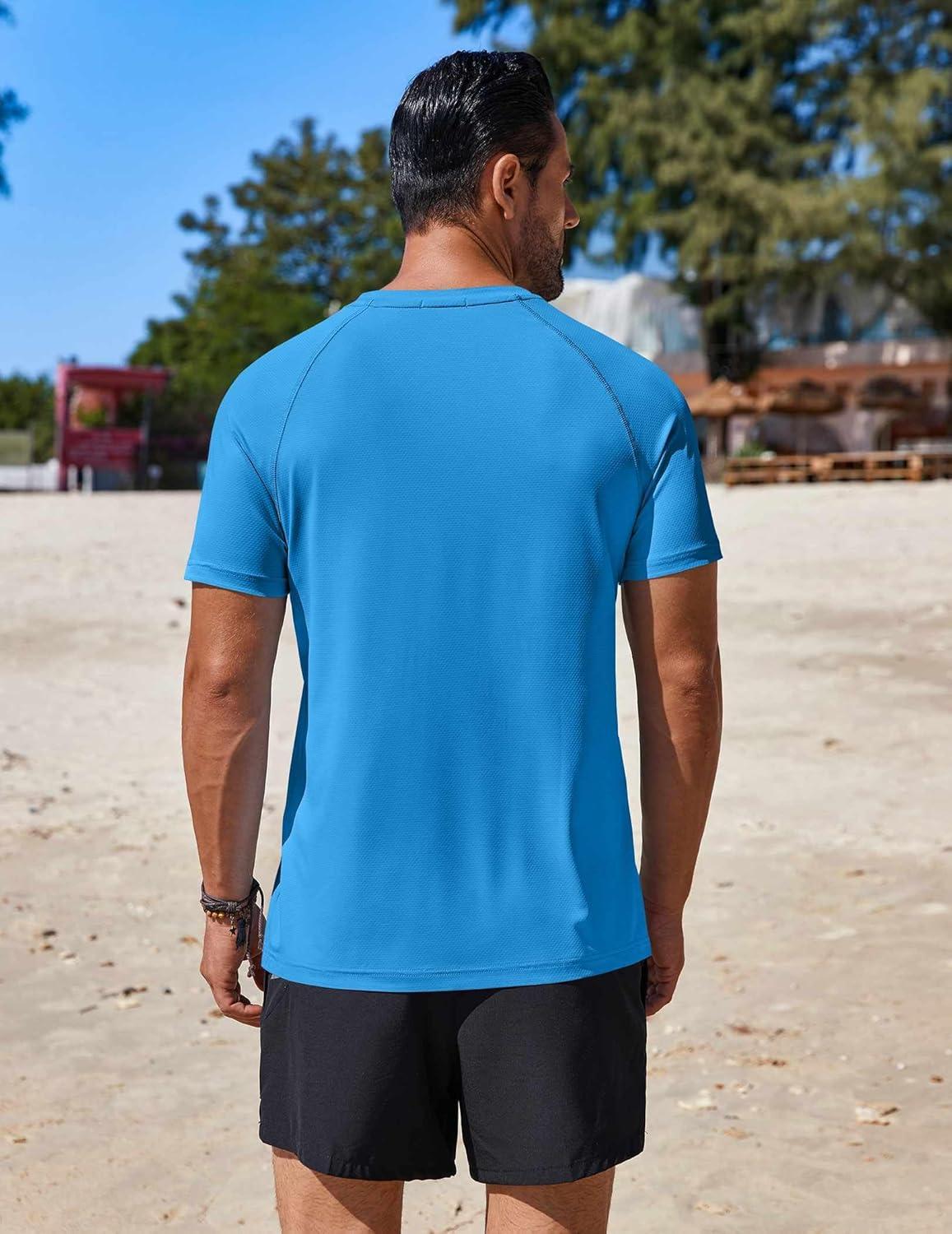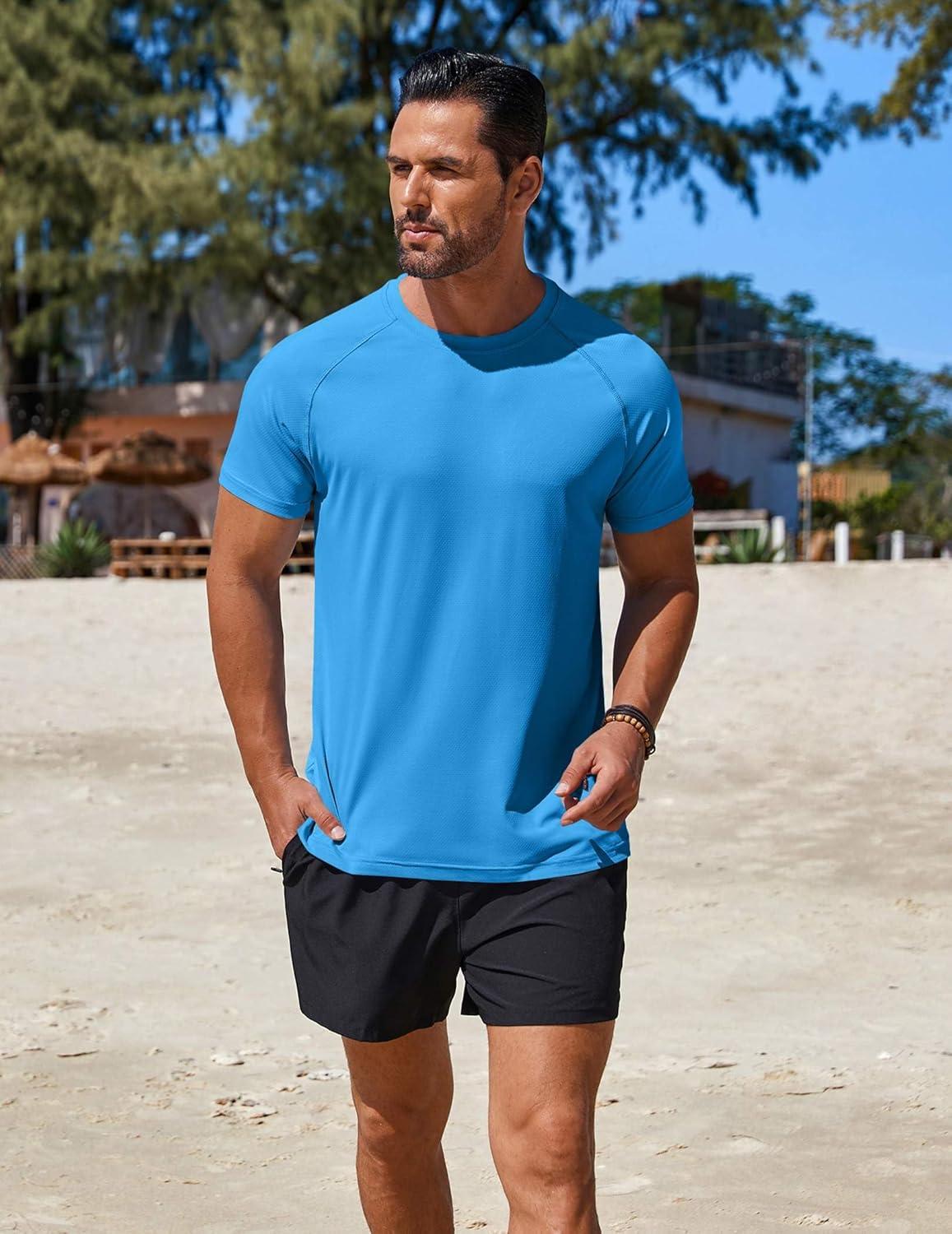 COOFANDY Mens Swim Shirt Short Sleeve UPF 50+ Sun Protection Shirt Rah Guard Athletic Quick Dry T Shirts(Sky Blue)