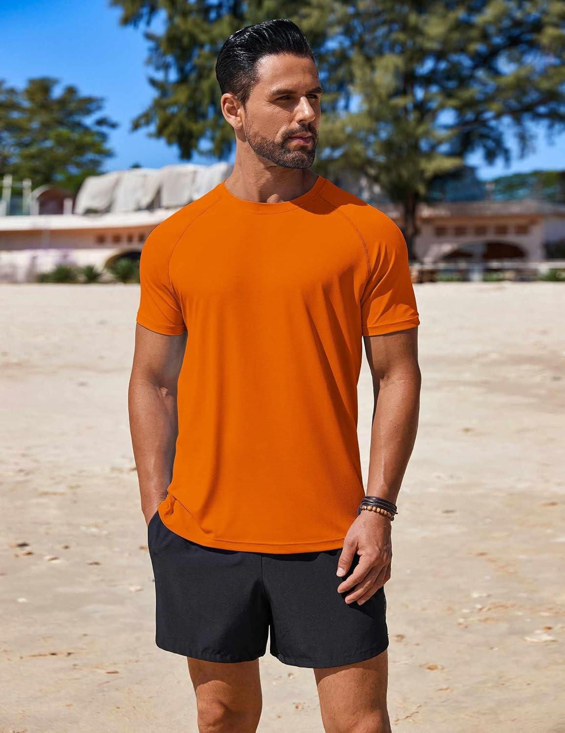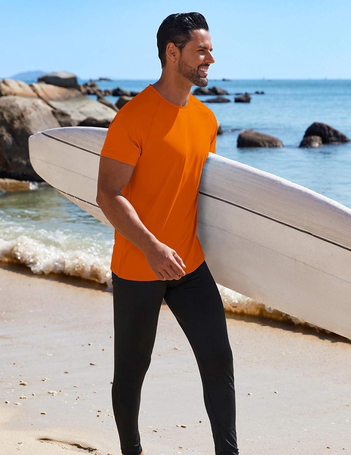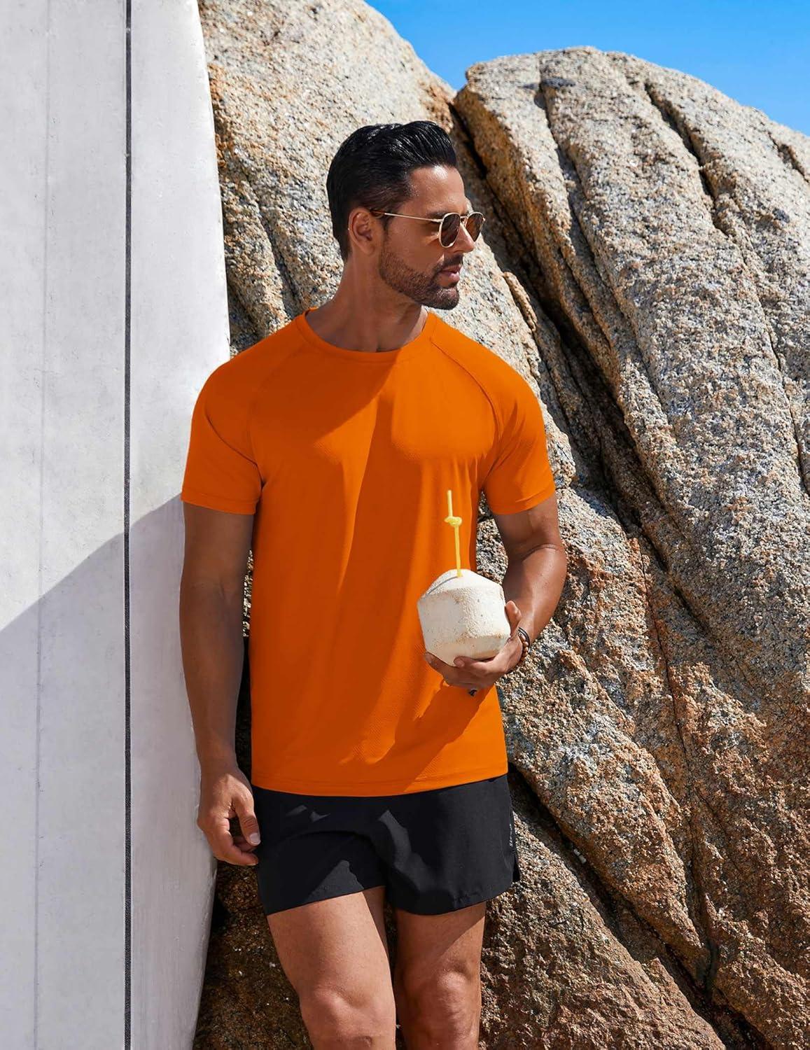 COOFANDY Mens Swim Shirt Short Sleeve UPF 50+ Sun Protection Shirt Rah Guard Athletic Quick Dry T Shirts(Orange)