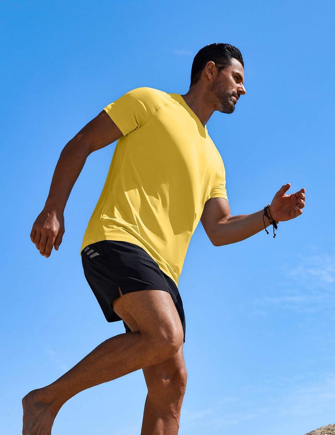 COOFANDY Mens Swim Shirt Short Sleeve UPF 50+ Sun Protection Shirt Rah Guard Athletic Quick Dry T Shirts(Yellow)