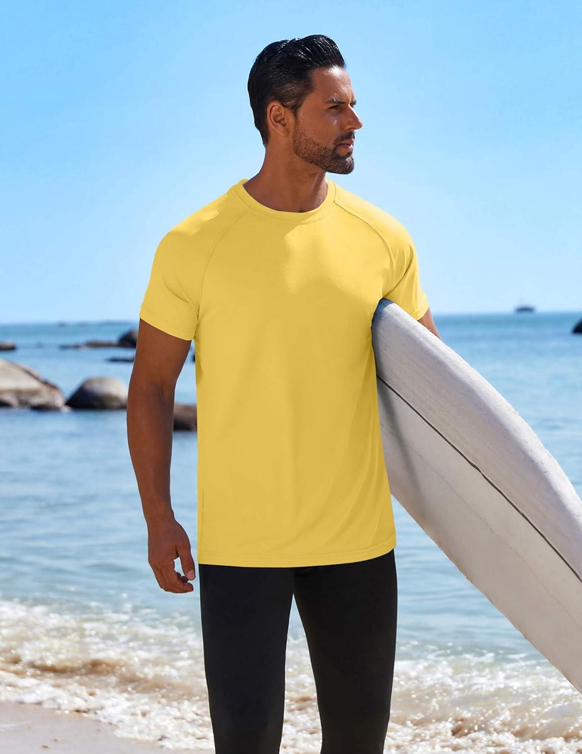 Save up to 40% on COOFANDY Mens Swim Shirt Short Sleeve UPF 50+ Sun Protection Shirt Rah Guard Athletic Quick Dry T Shirts(Yellow) styles during our end-of-season sale.