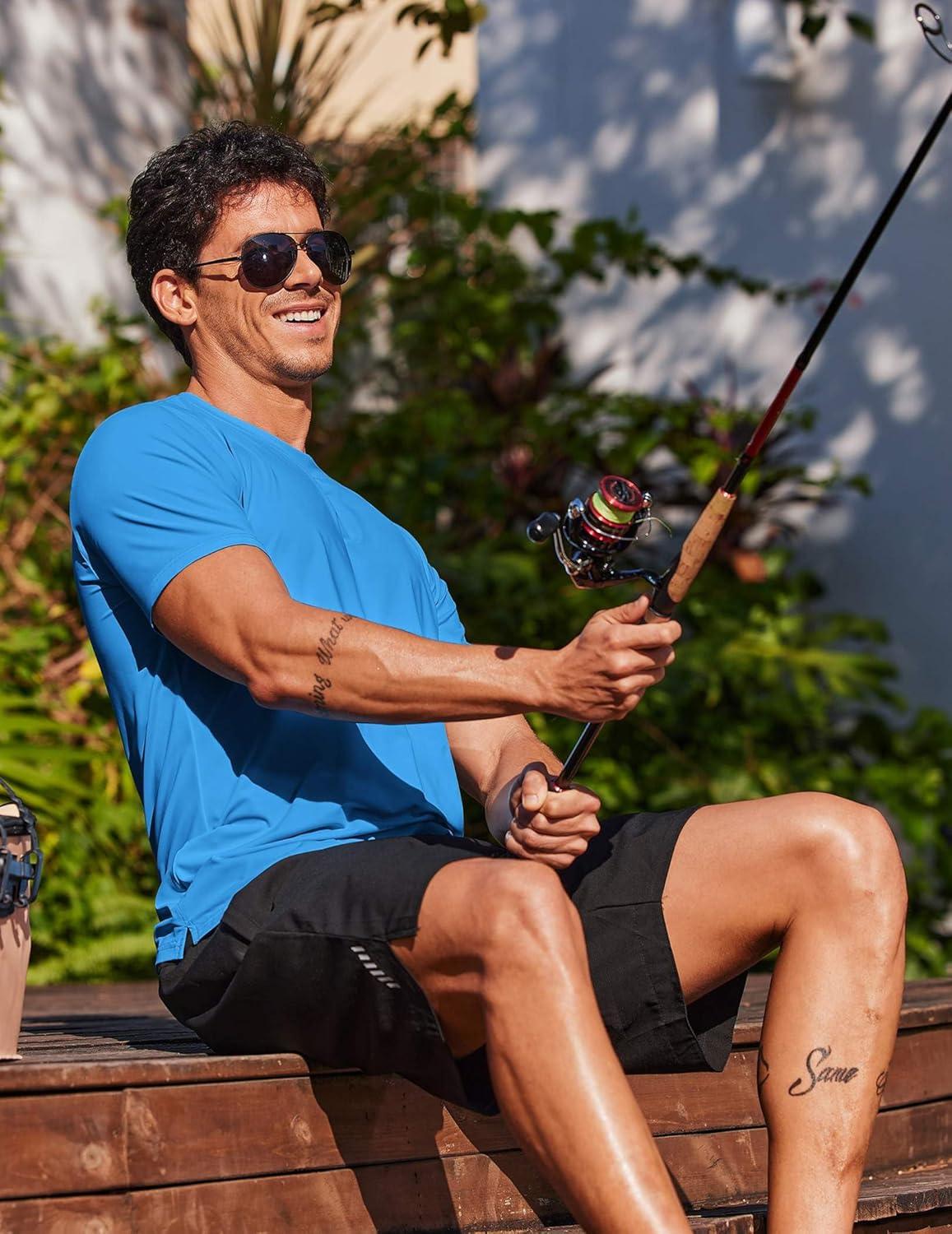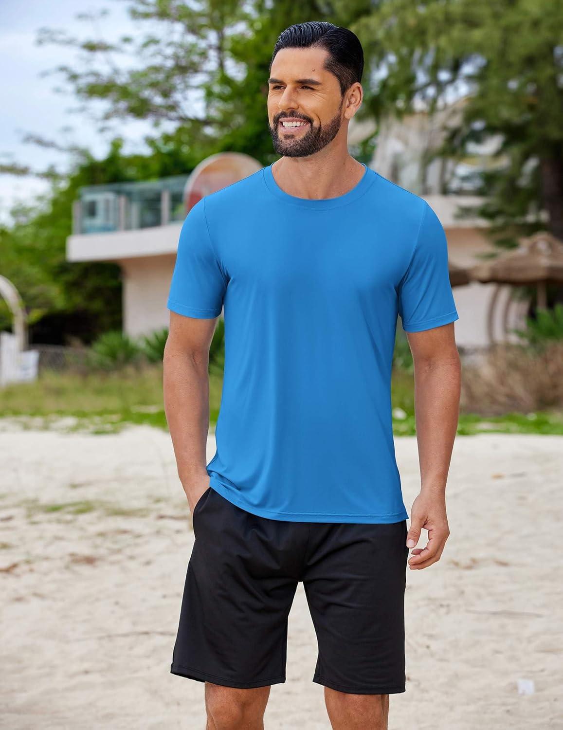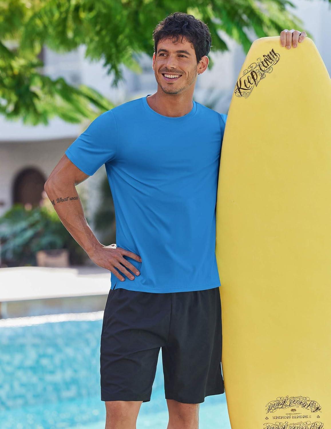 COOFANDY Men’s Swim Shirt Short Sleeve UPF 50+ Sun Shirt Rash Guard T-Shirts Quick Dry Beach Shirts Breathable(Blue)