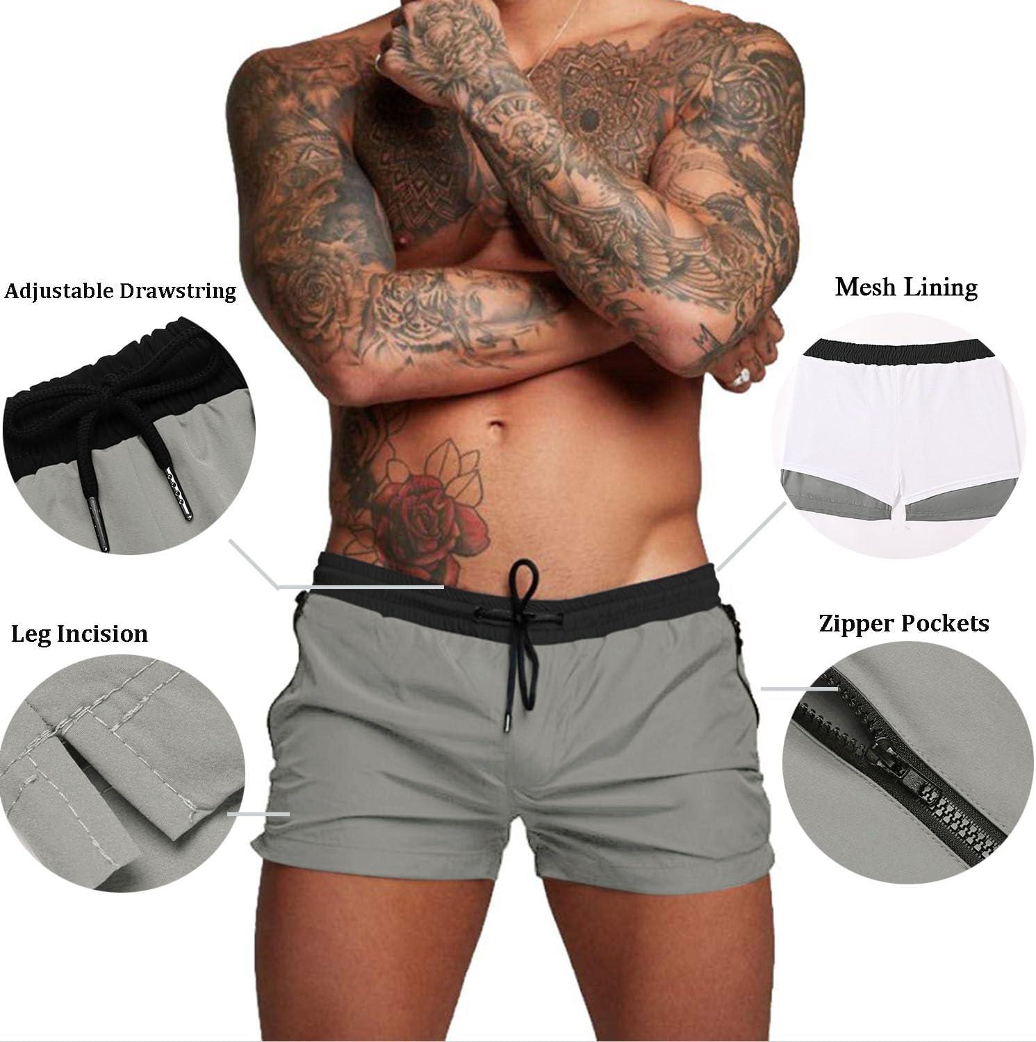 COOFANDY Men's Swim Trunk Quick Dry Swimwear Mesh Lining Bathing Suit Swimsuit Board Beach Sport Short(Grey and Black)