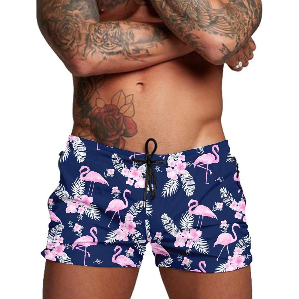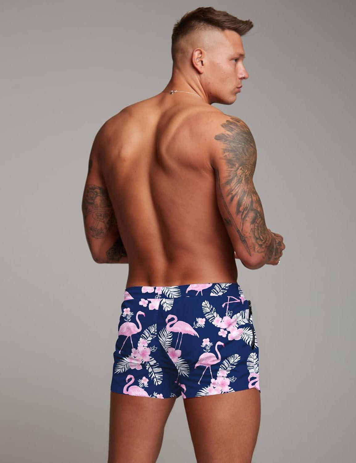 imageCOOFANDY Mens Swim Trunk Quick Dry Swimwear Mesh Lining Bathing Suit Swimsuit Board Beach Sport ShortNavy Blue Flamingo