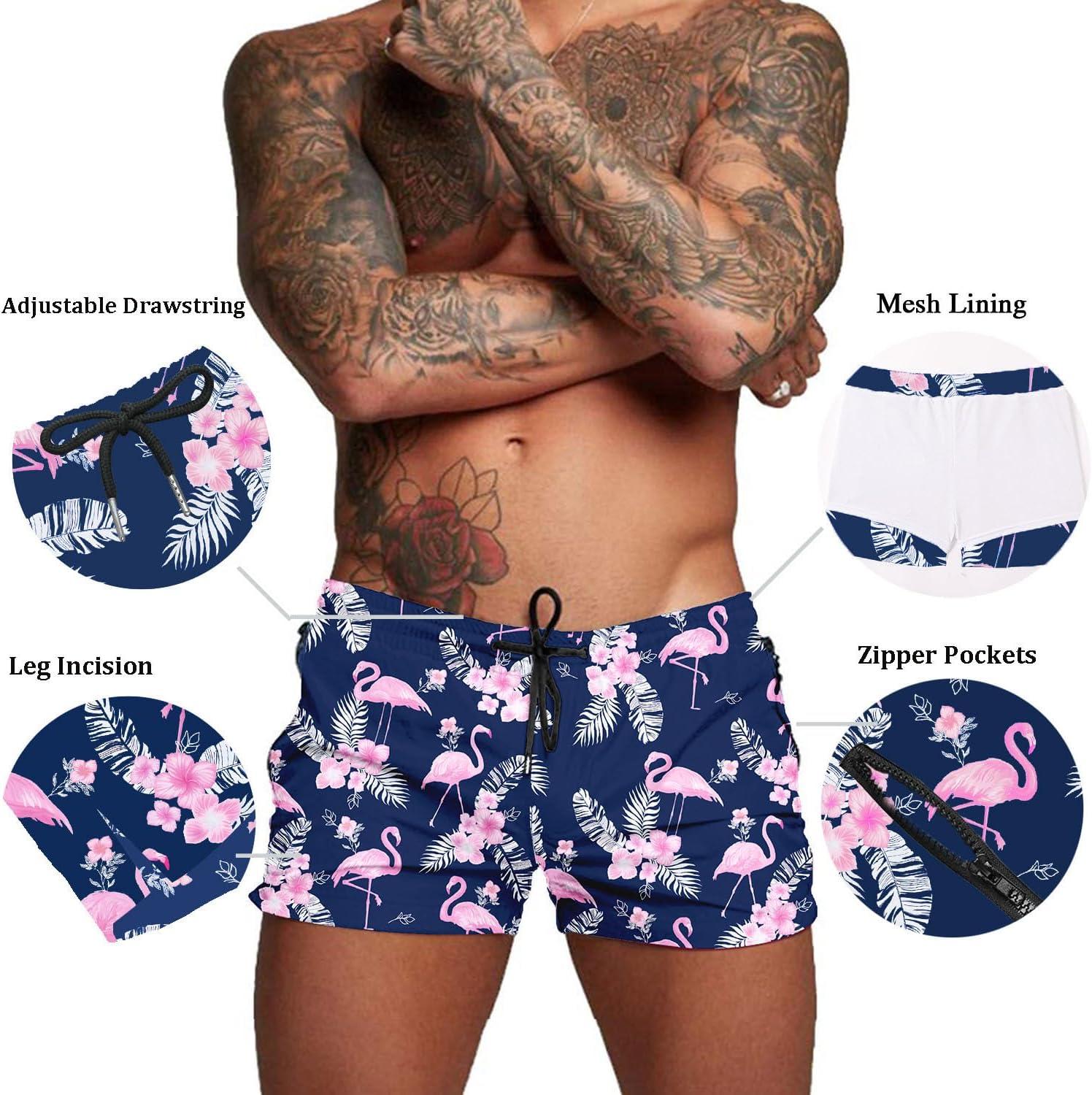 COOFANDY Men's Swim Trunk Quick Dry Swimwear Mesh Lining Bathing Suit Swimsuit Board Beach Sport Short(Navy Blue Flamingo)