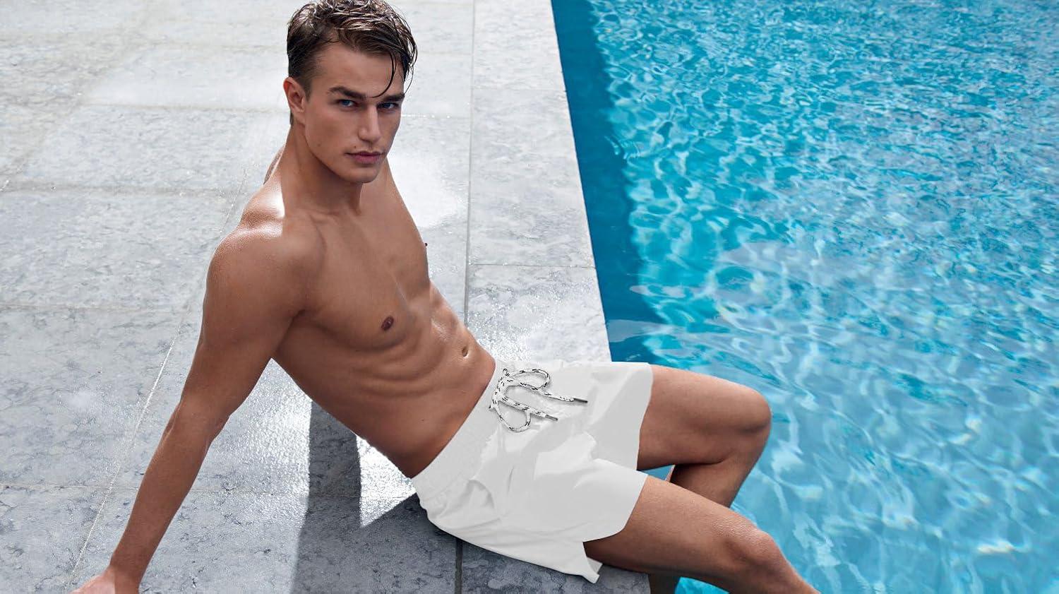 imageCOOFANDY Mens Swim Trunks Quick Dry Board Shorts Swimsuit Swimwear Bathing SuitC White