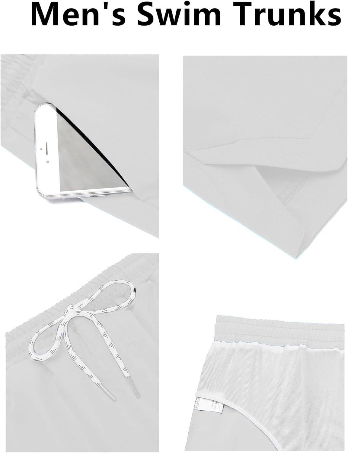COOFANDY Men’s Swim Trunks Quick Dry Board Shorts Swimsuit Swimwear Bathing Suit(C White)