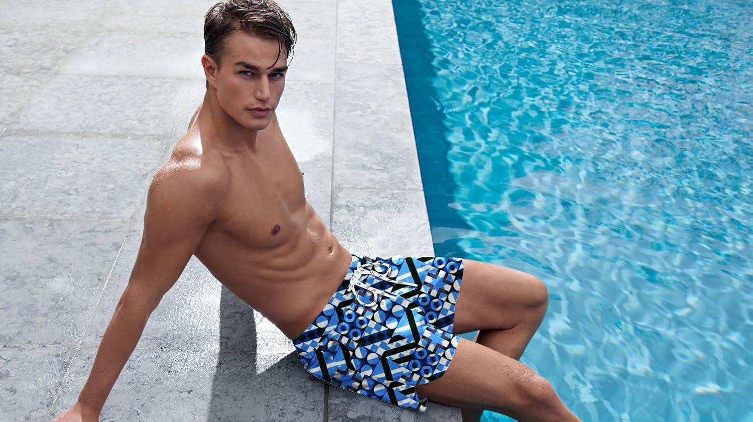 COOFANDY Men's Swim Trunks Quick Dry Board Shorts Swimsuit Swimwear Bathing Suit(P Geometric Figures)