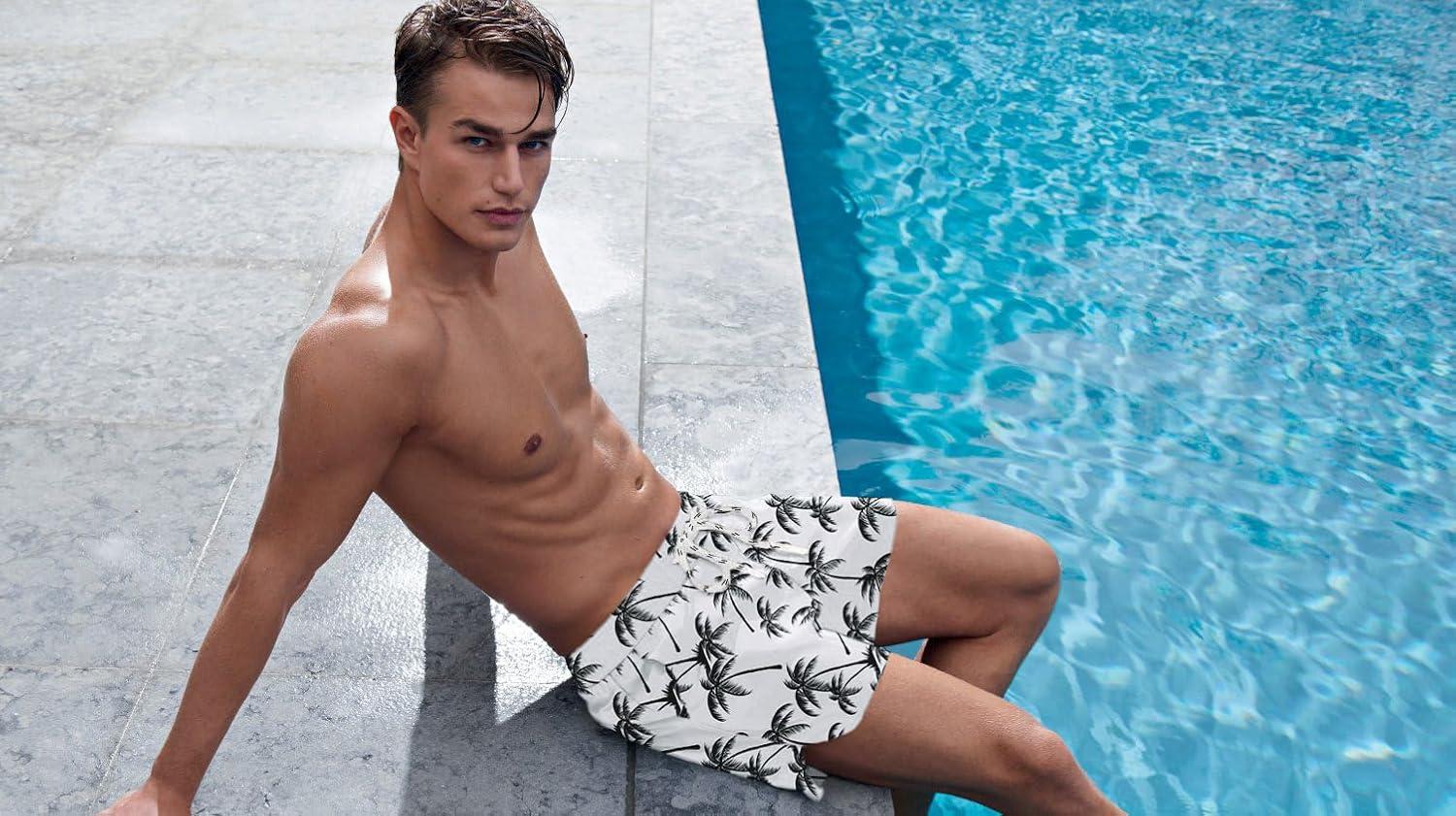 imageCOOFANDY Mens Swim Trunks Quick Dry Board Shorts Swimsuit Swimwear Bathing SuitP White Palm Leaf
