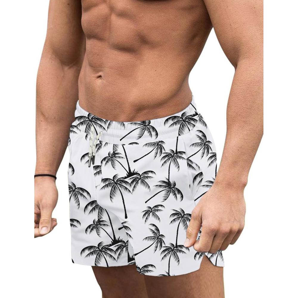 COOFANDY Men's Swim Trunks Quick Dry Board Shorts Swimsuit Swimwear Bathing Suit(P White-coconut Tree)