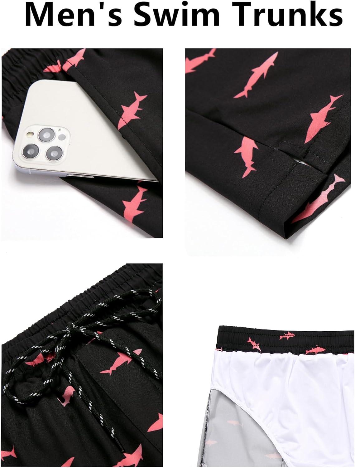 COOFANDY Men’s Swim Trunks Quick Dry Board Shorts Swimsuit Swimwear Bathing Suit(Pinkshark Black)