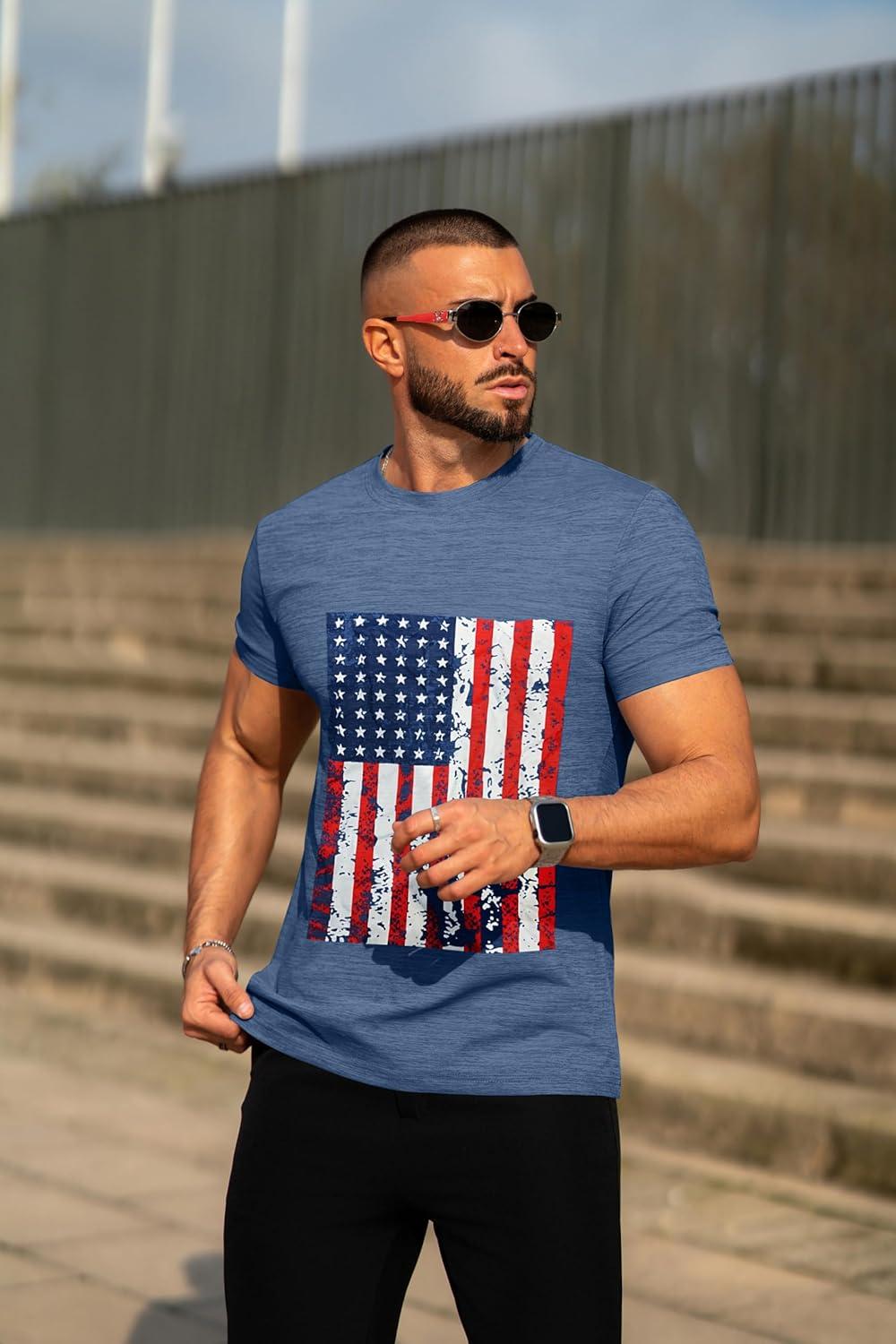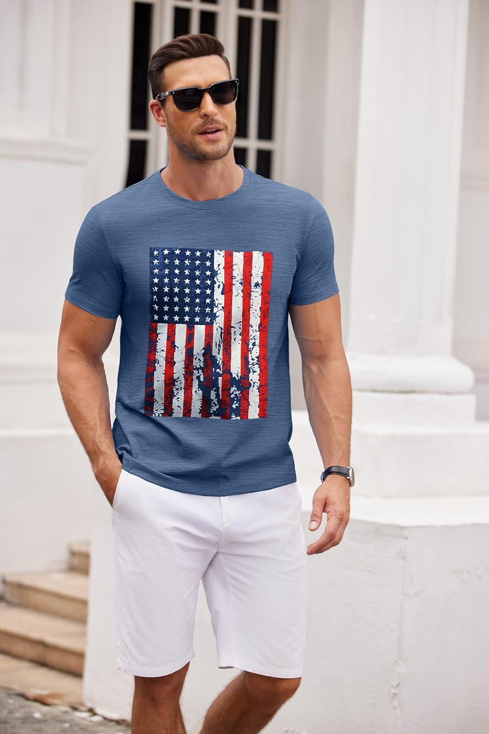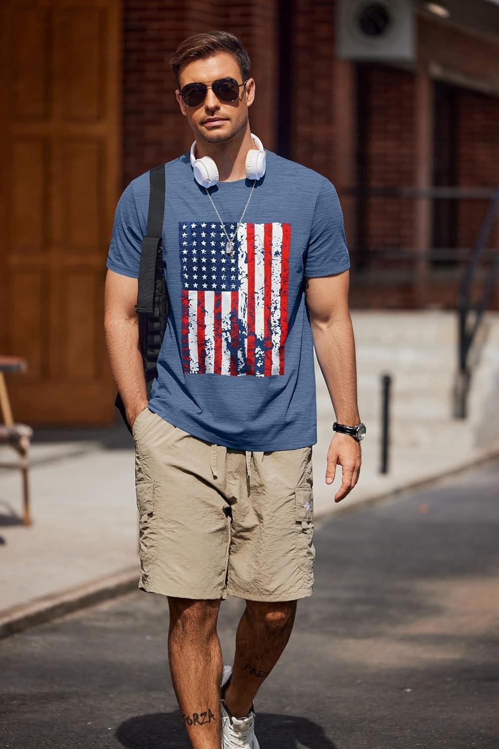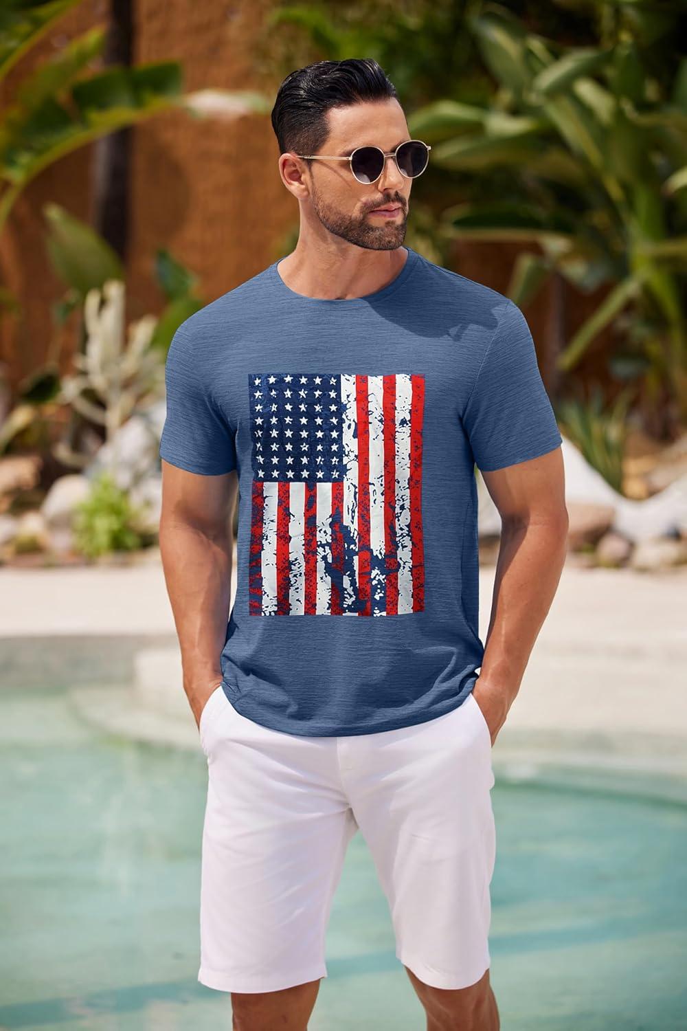 COOFANDY Men's T Shirt Short Sleeve Classic Crew Neck T-Shirt Casual Summer Basic Tee Shirts(Y- Blue Red White Flag)