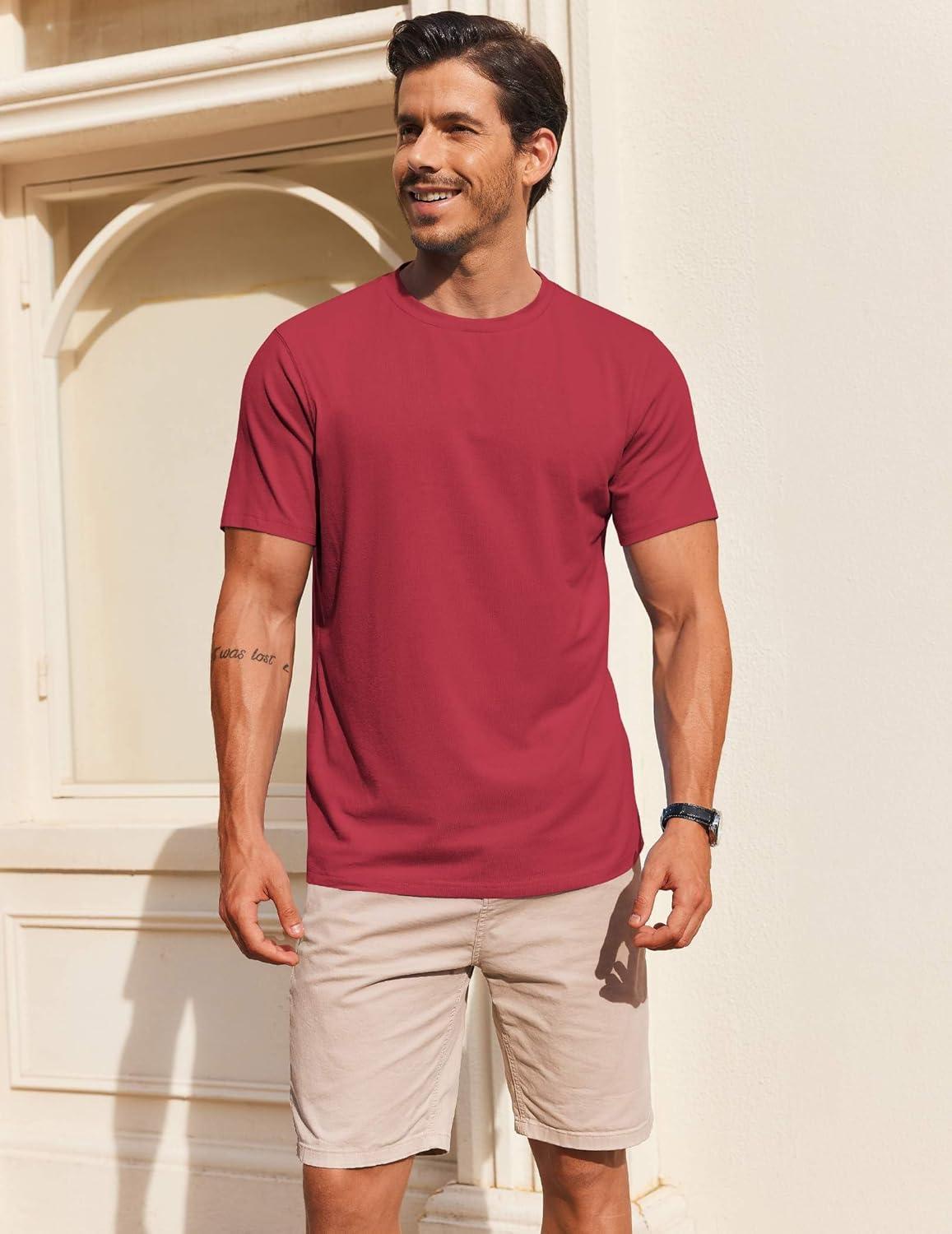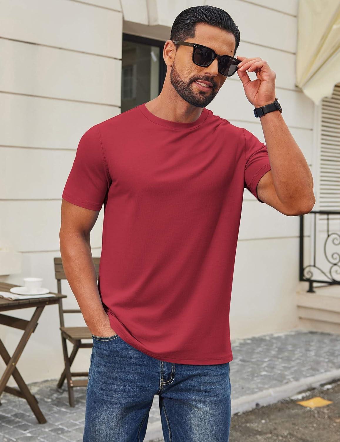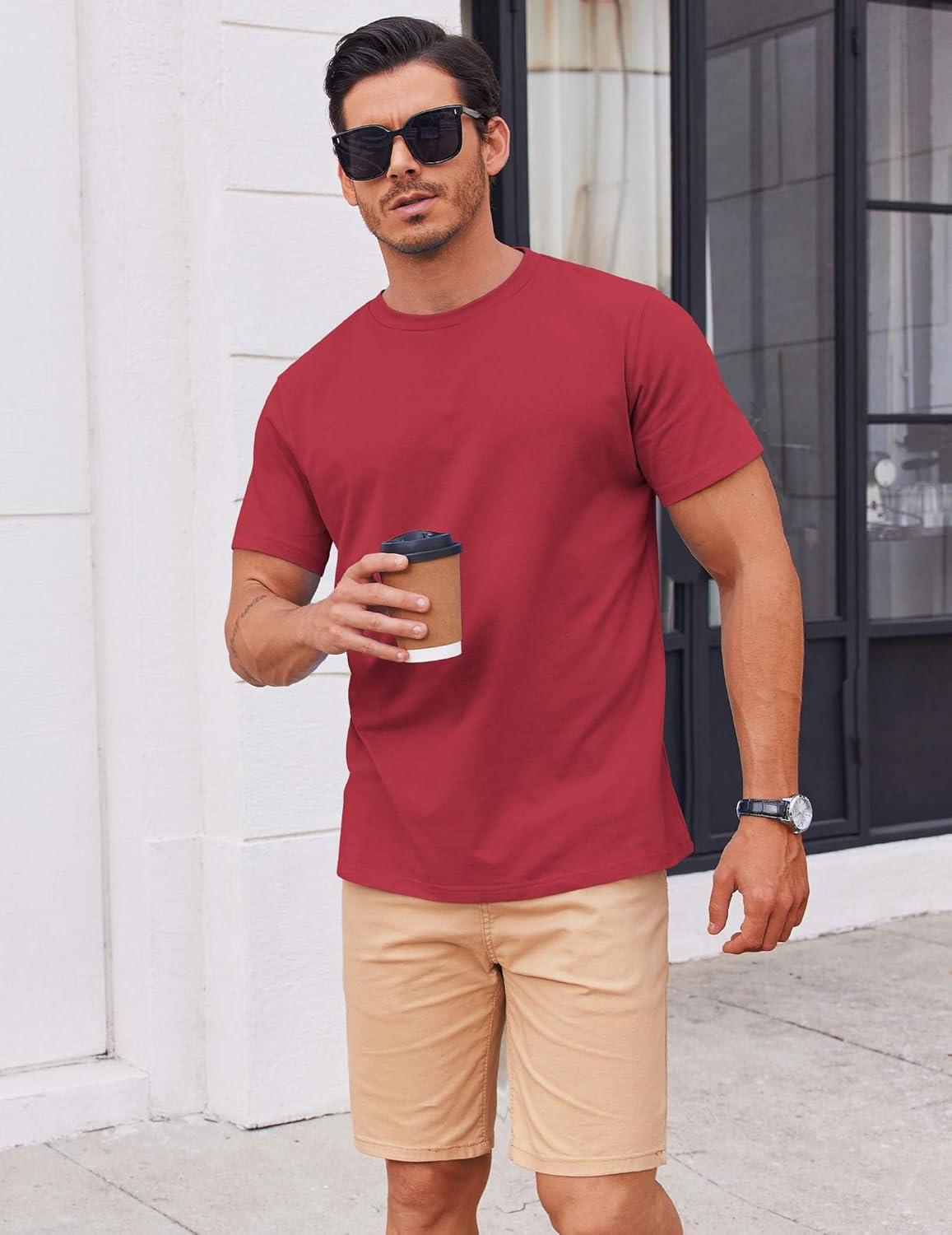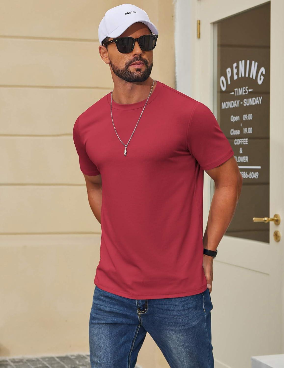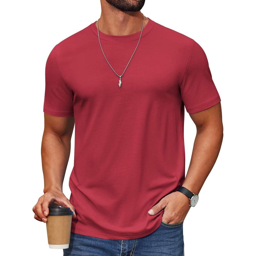 COOFANDY Men's T Shirt Short Sleeve Cotton Blend T-Shirts Crew Neck Casual Summer Basic Tee Shirts(Deep Red)