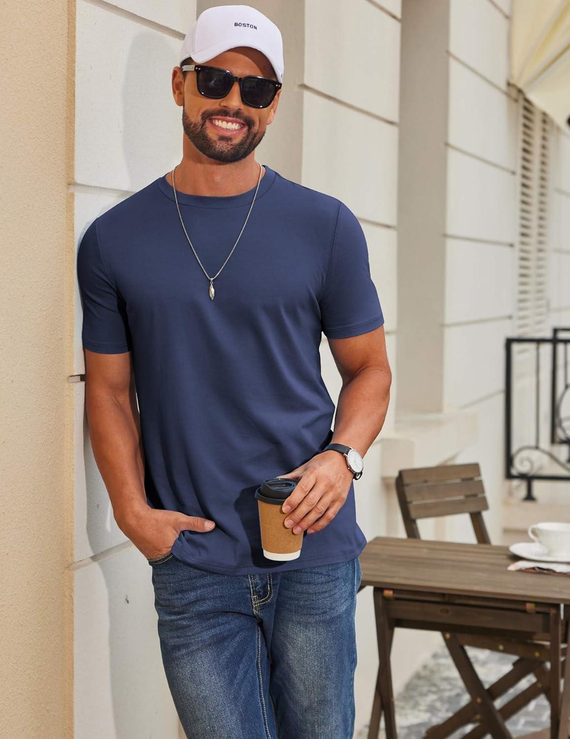 COOFANDY Men's T Shirt Short Sleeve Cotton Blend T-Shirts Crew Neck Casual Summer Basic Tee Shirts(Navy)