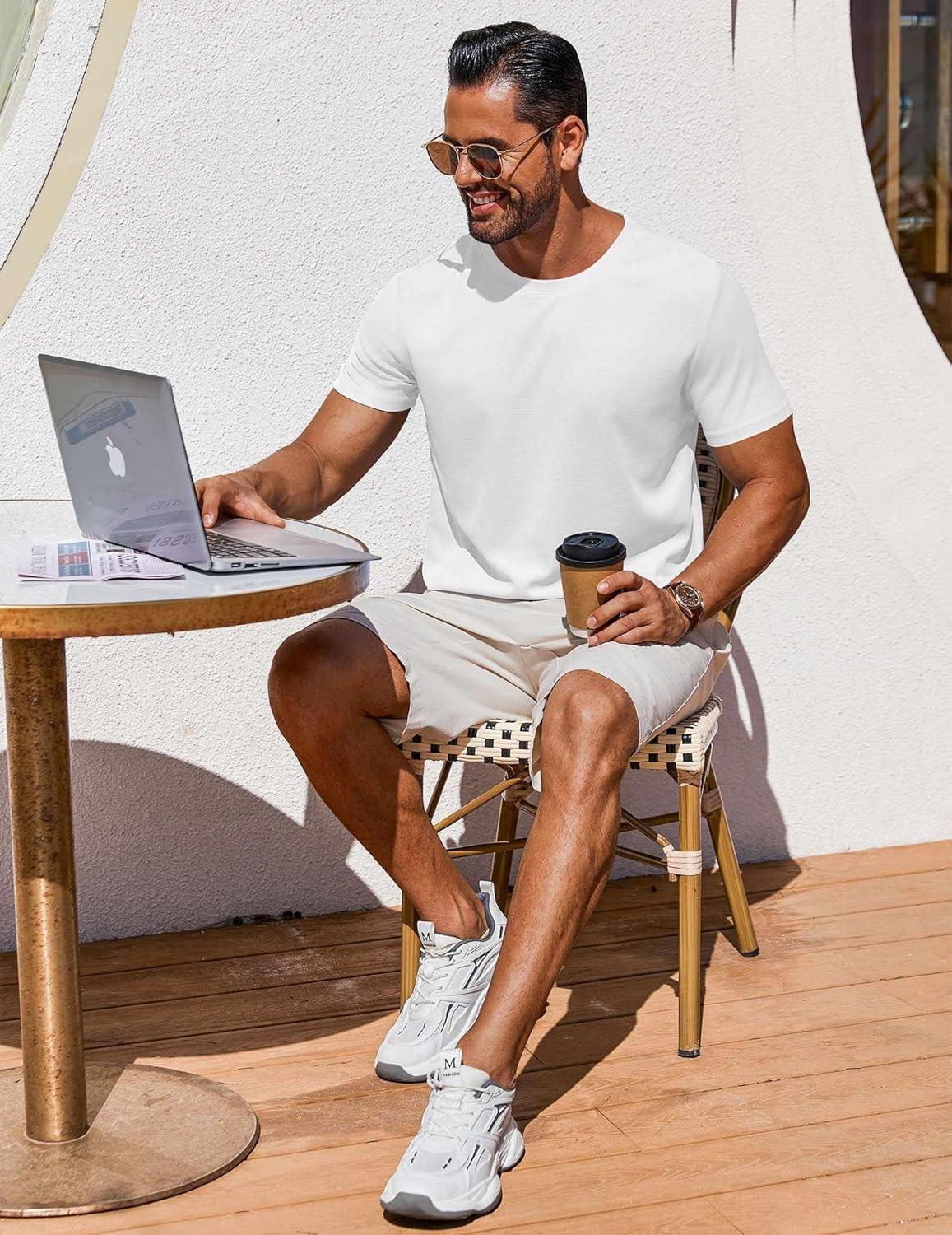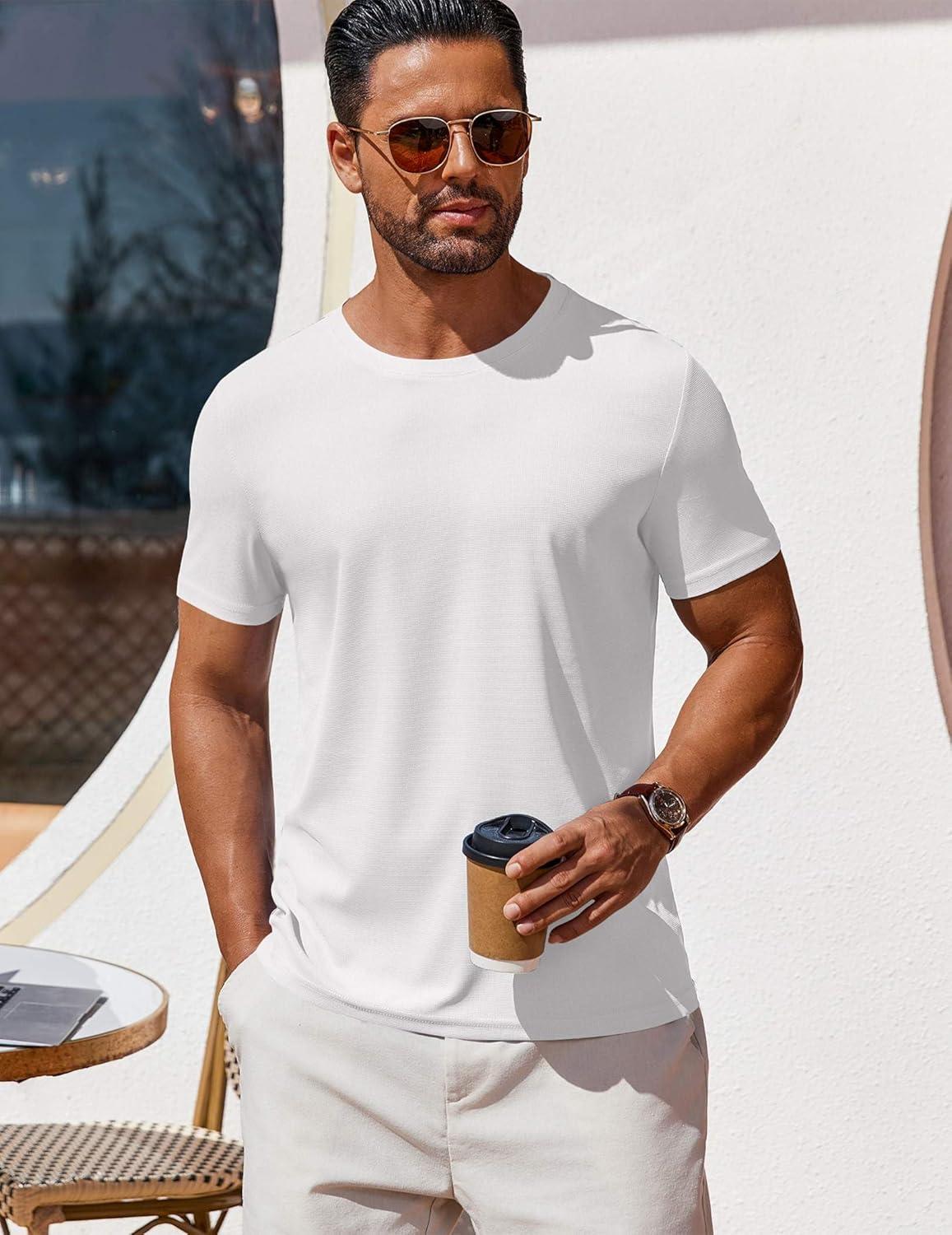 COOFANDY Men's T Shirt Short Sleeve Crew Neck T-Shirt Casual Summer Classic Basic Tee Shirts(White)