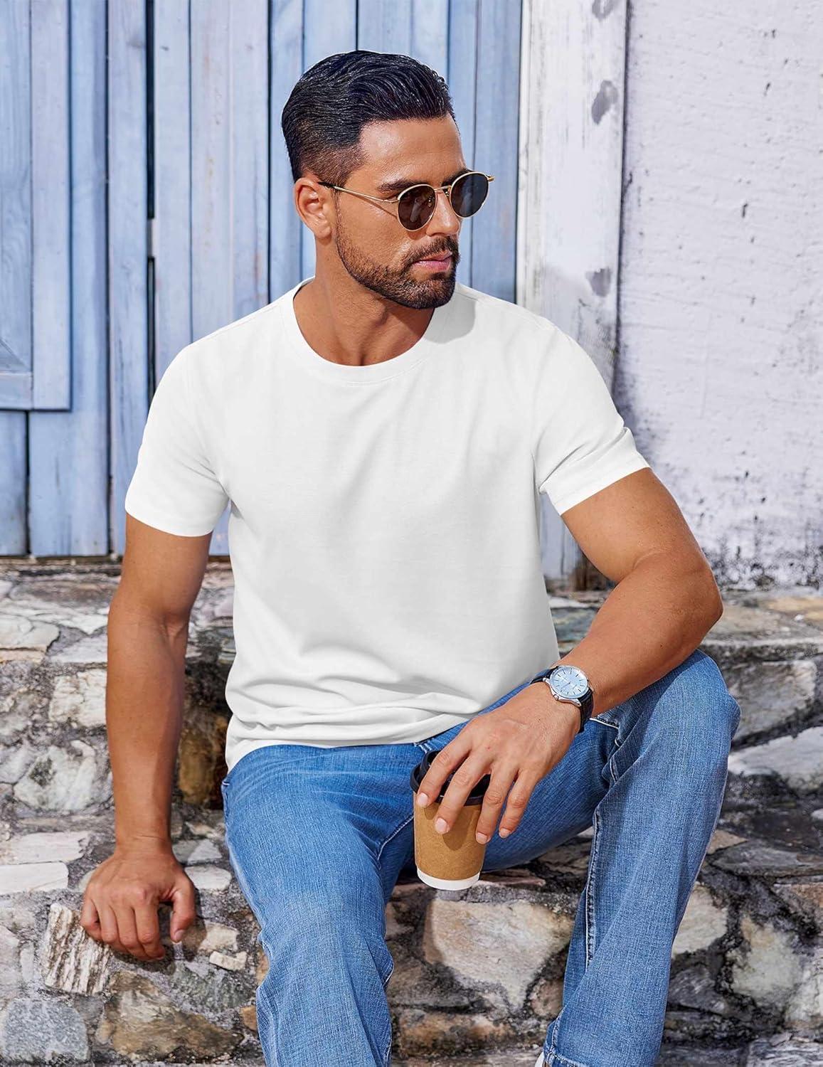COOFANDY Men’s T Shirt Short Sleeve Crew Neck T-Shirt Casual Summer Classic Basic Tee Shirts(White)