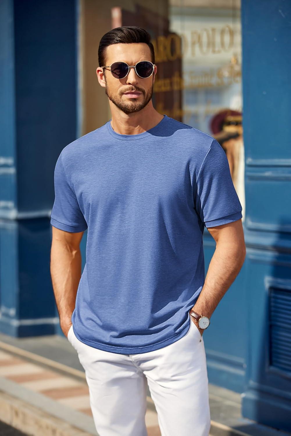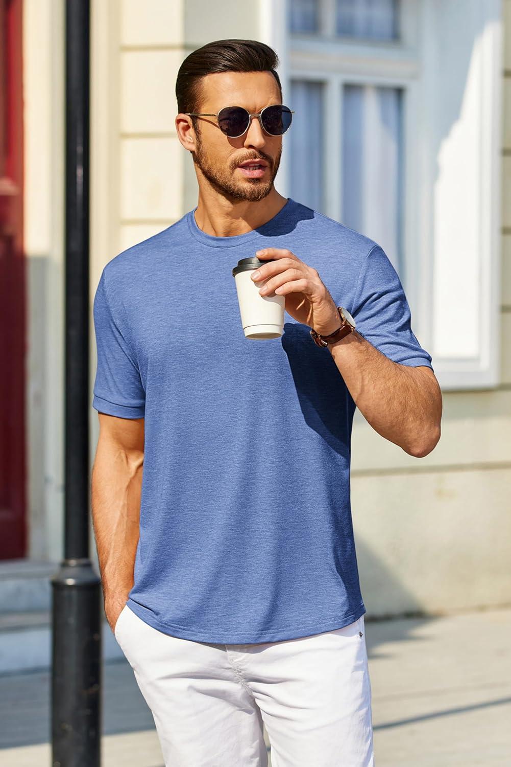 COOFANDY Men's T Shirt Short Sleeve Crew Neck T-Shirt Casual Summer Tshirt Classic Basic Tee Shirt(Blue)