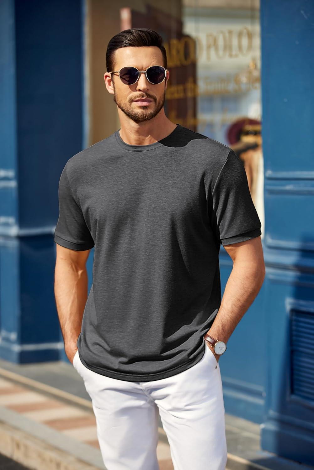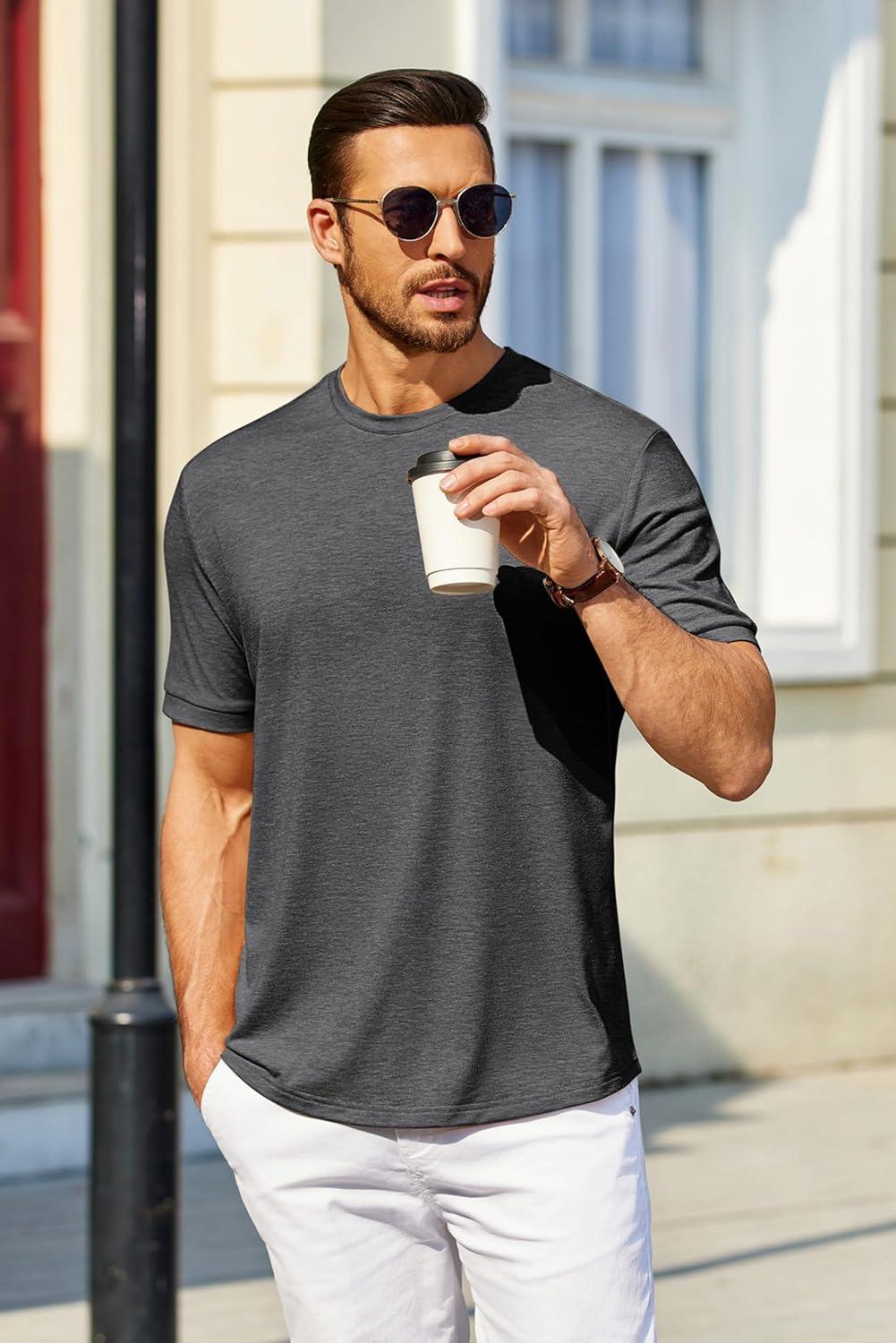 COOFANDY Men's T Shirt Short Sleeve Crew Neck T-Shirt Casual Summer Tshirt Classic Basic Tee Shirt(Dark Gray)