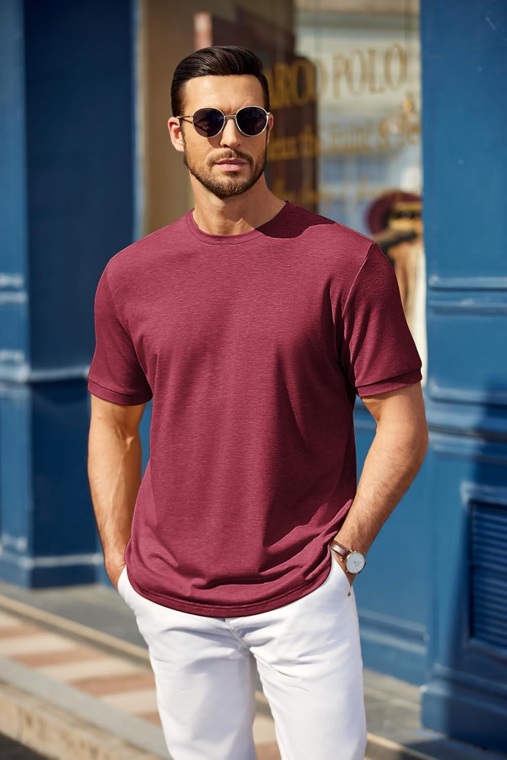 COOFANDY Men's T Shirt Short Sleeve Crew Neck T-Shirt Casual Summer Tshirt Classic Basic Tee Shirt(Wine Red)
