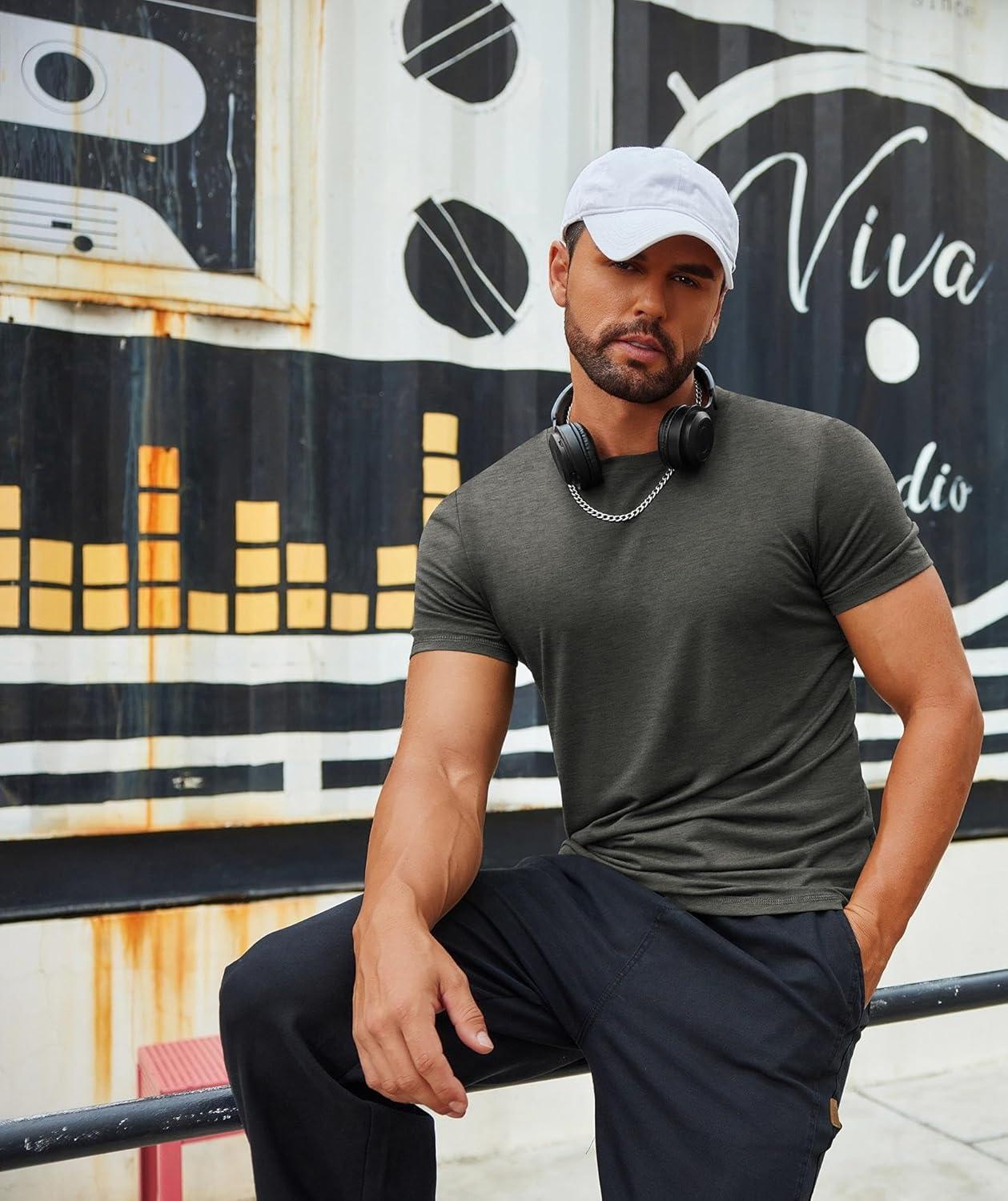 COOFANDY Men’s T Shirt Short Sleeve Crew Neck T-Shirts Casual Summer Classic Basic Tees(Charcoal Heather)