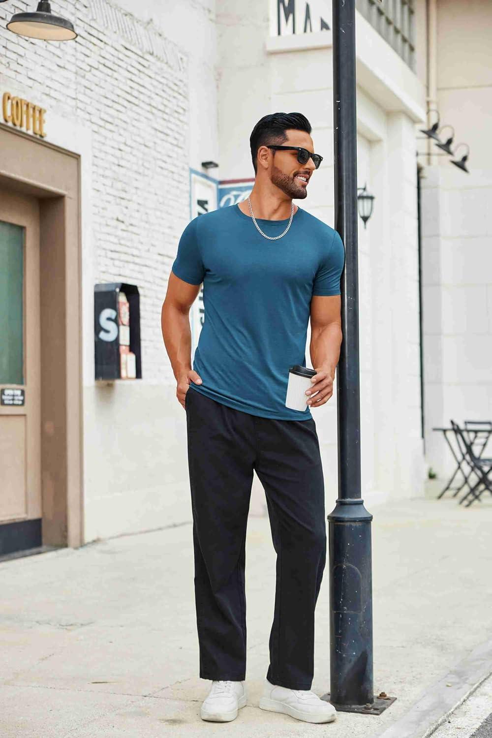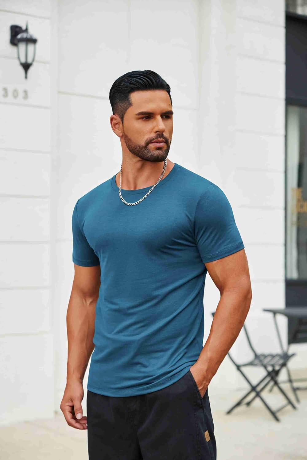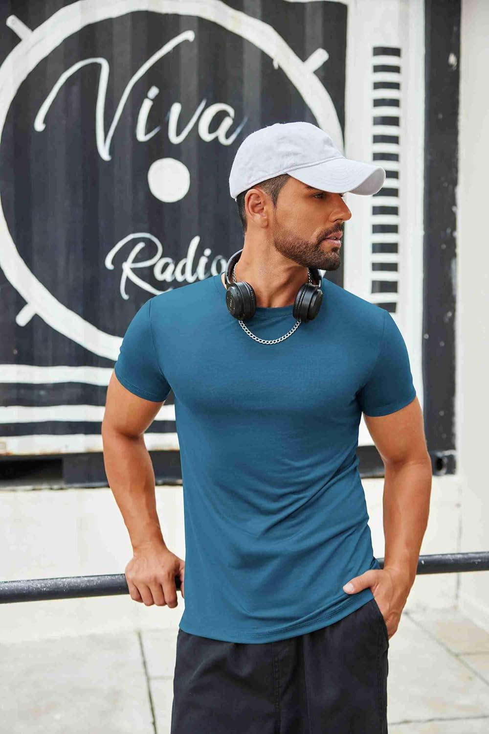 COOFANDY Men’s T Shirt Short Sleeve Crew Neck T-Shirts Casual Summer Classic Basic Tees(Dark Blue)