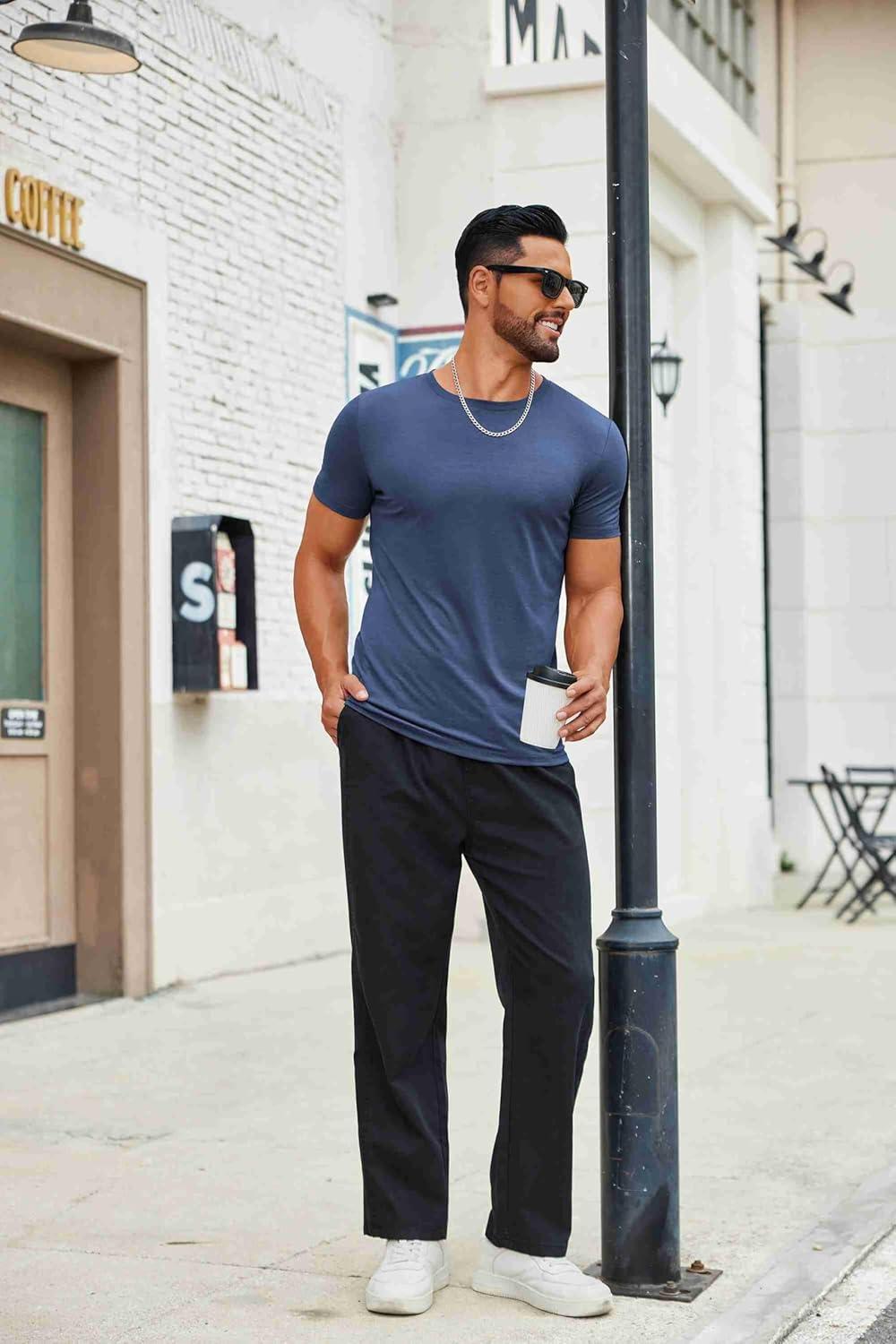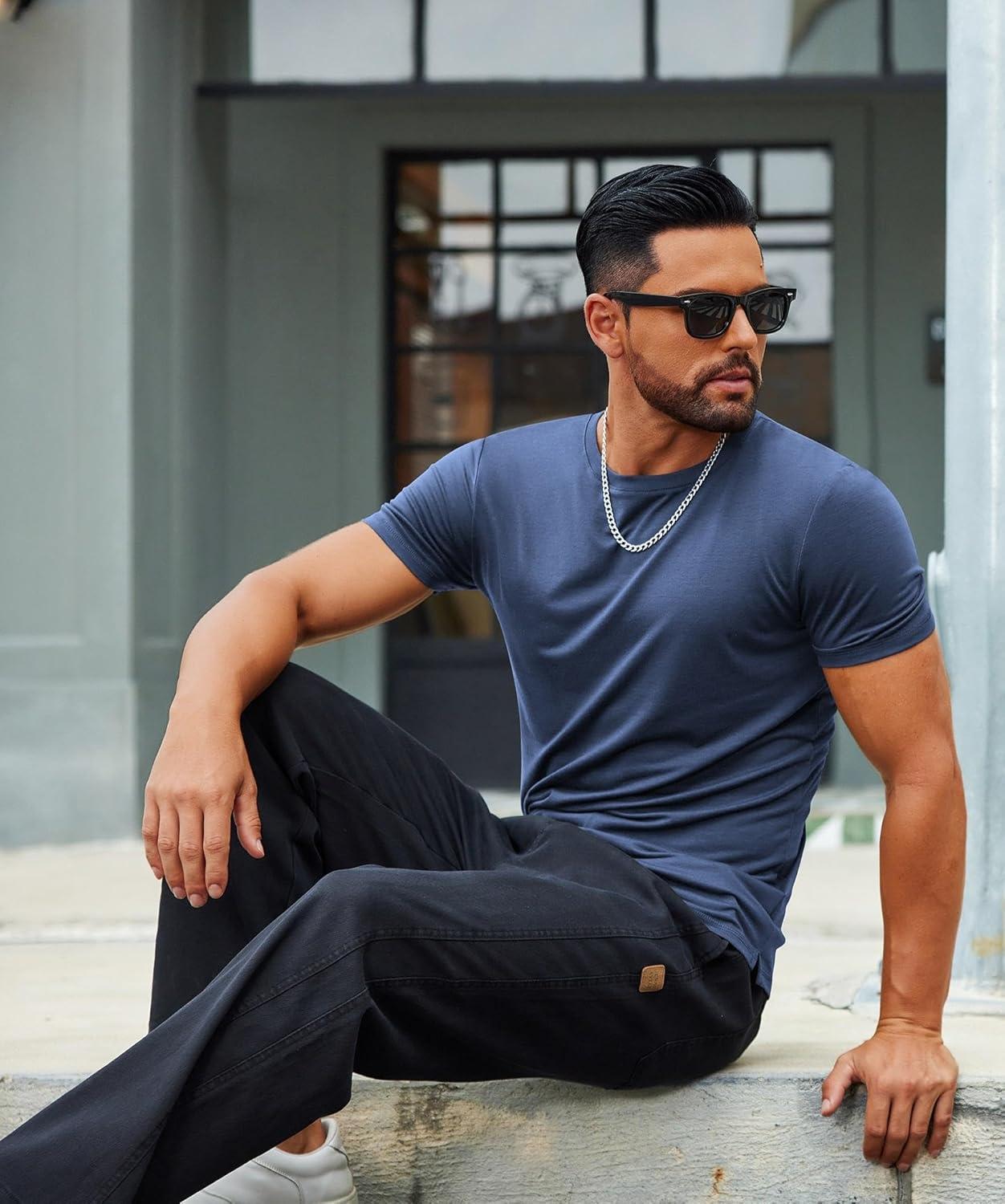 COOFANDY Men’s T Shirt Short Sleeve Crew Neck T-Shirts Casual Summer Classic Basic Tees(Denim Blue)