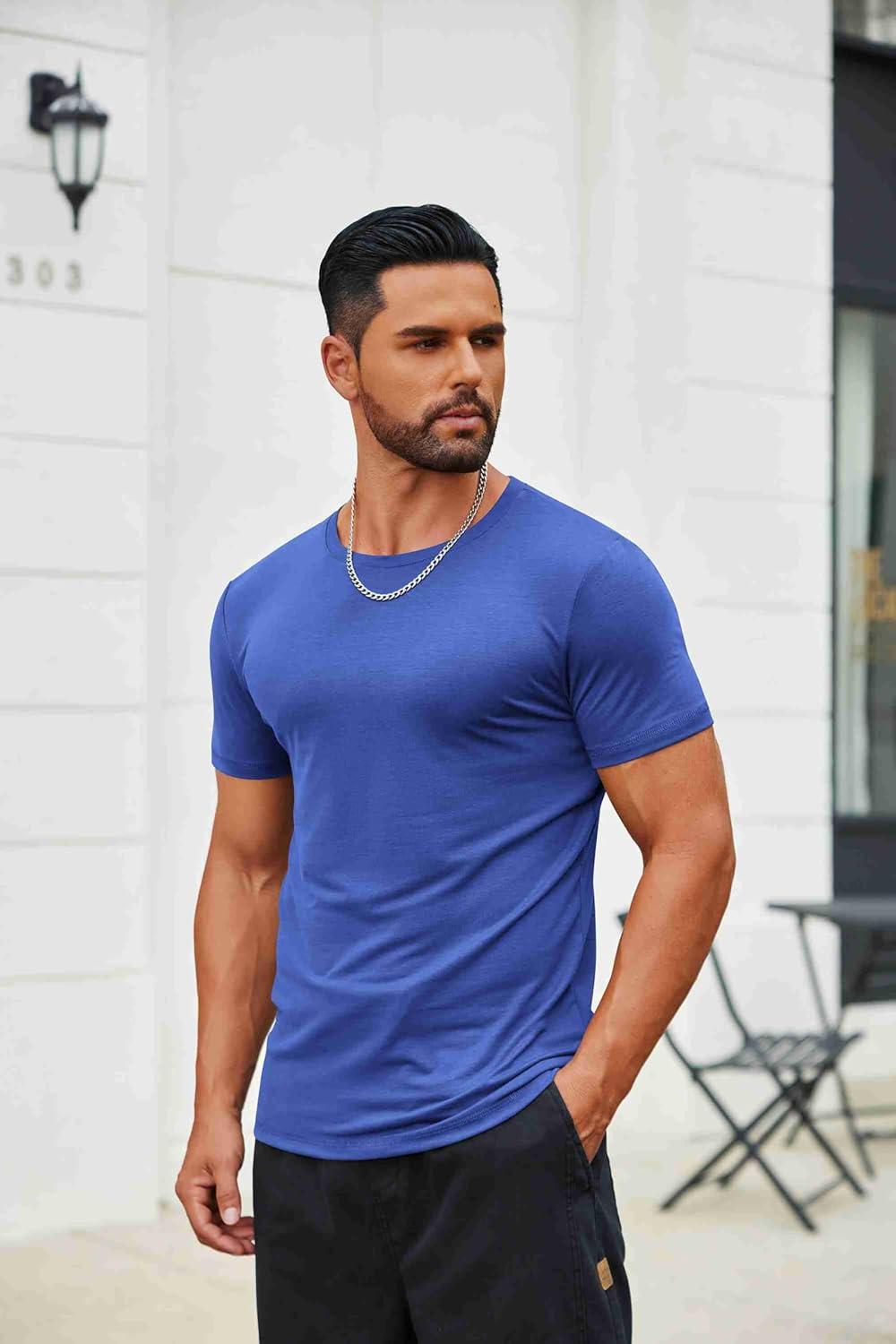 COOFANDY Men’s T Shirt Short Sleeve Crew Neck T-Shirts Casual Summer Classic Basic Tees(Denim Blue)