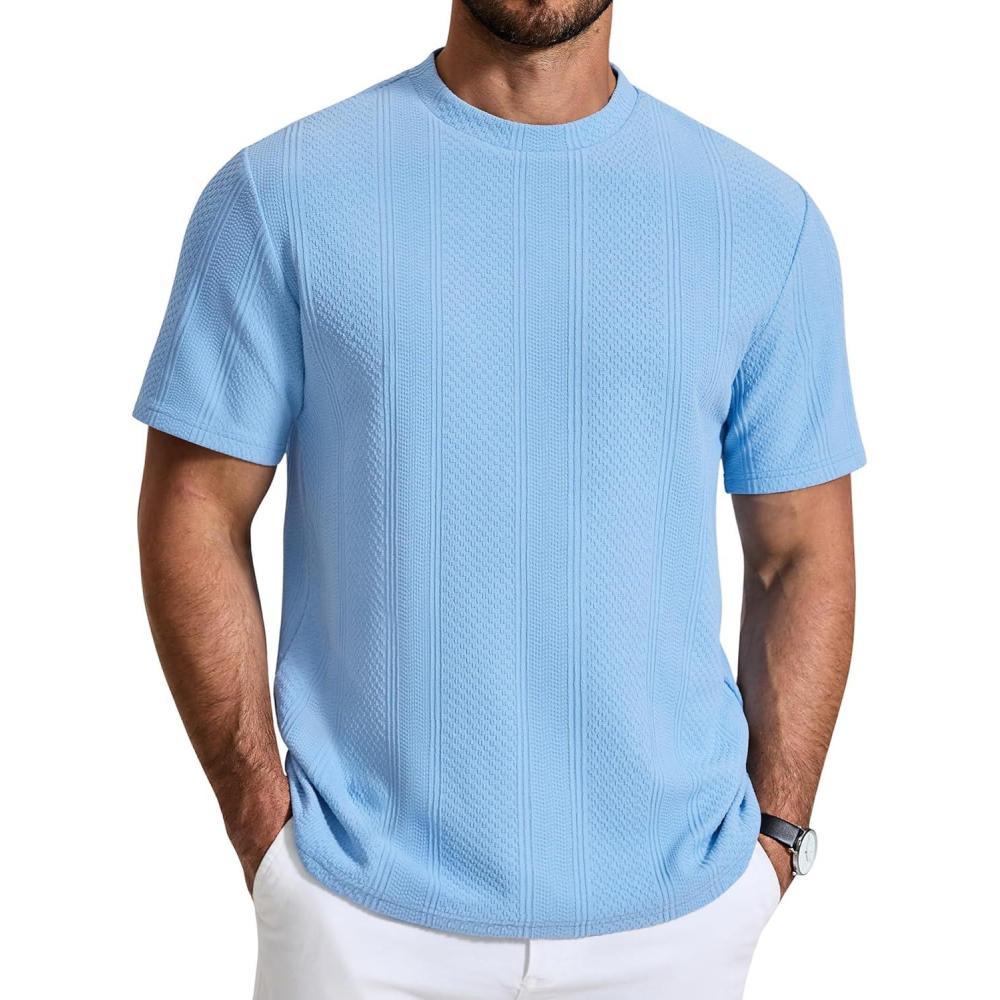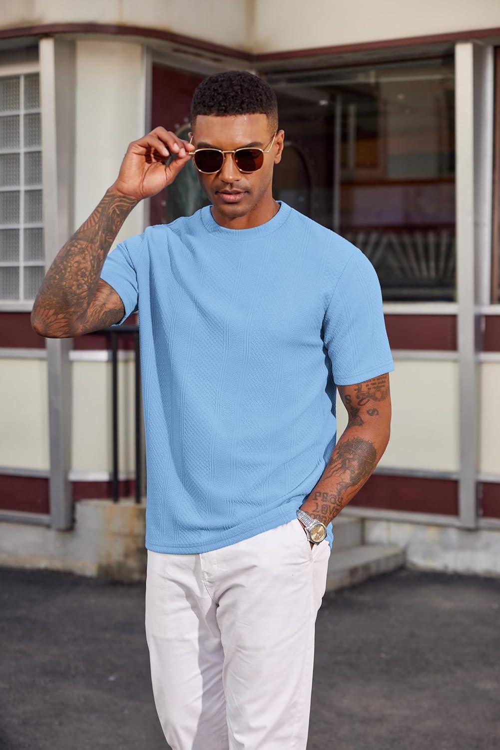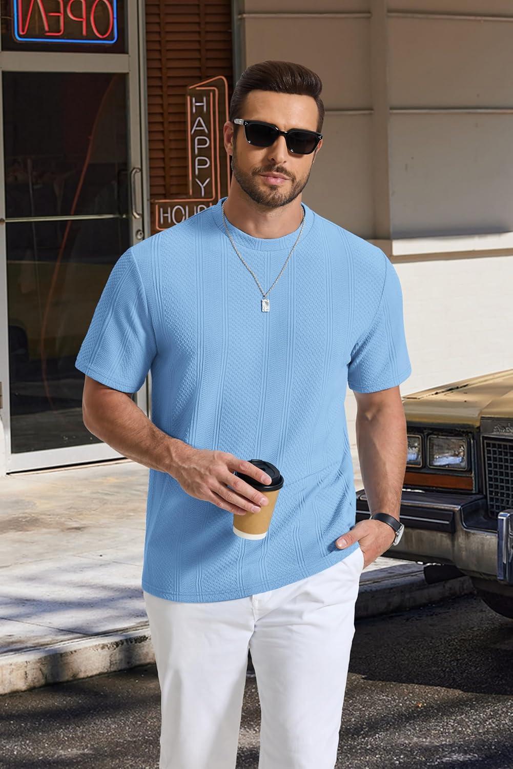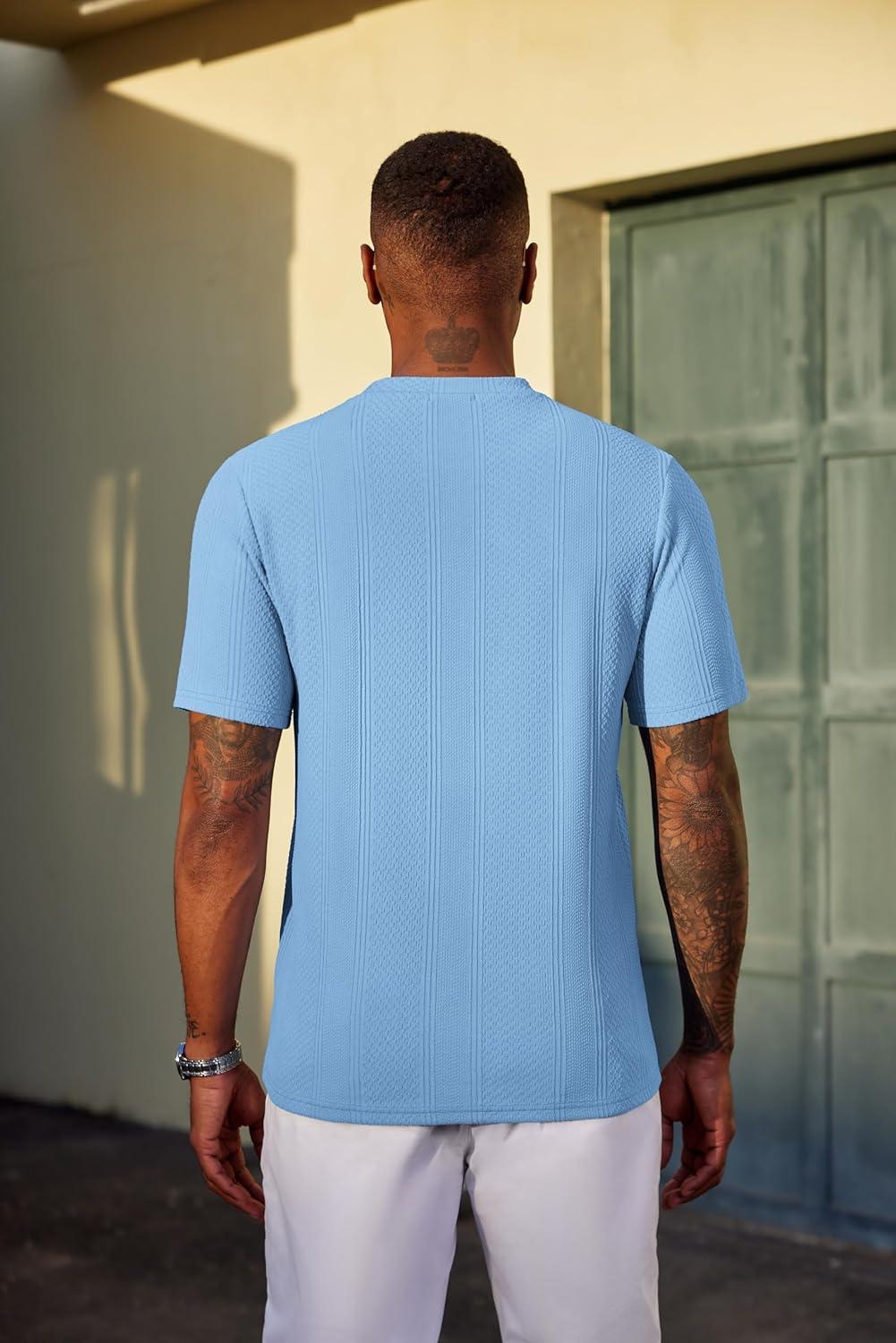 COOFANDY Men's T-Shirt Short Sleeve Crew Neck Textured Shirts Classic Knit Pullover Tees(Light Blue)