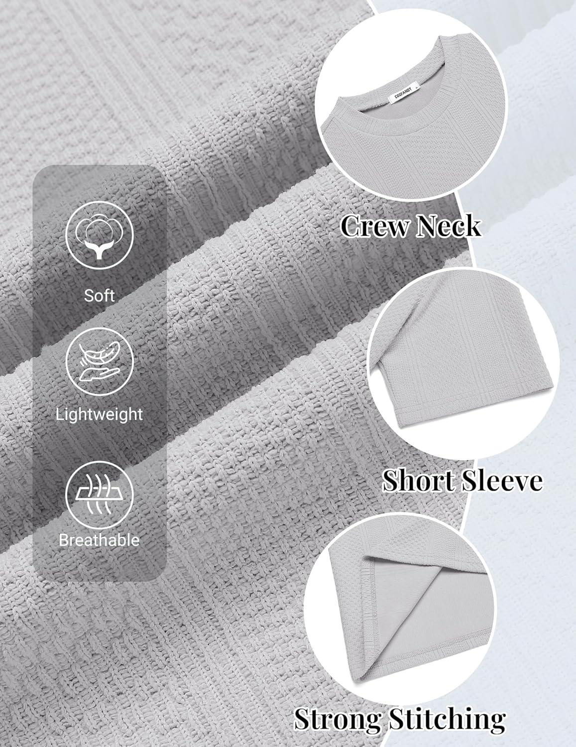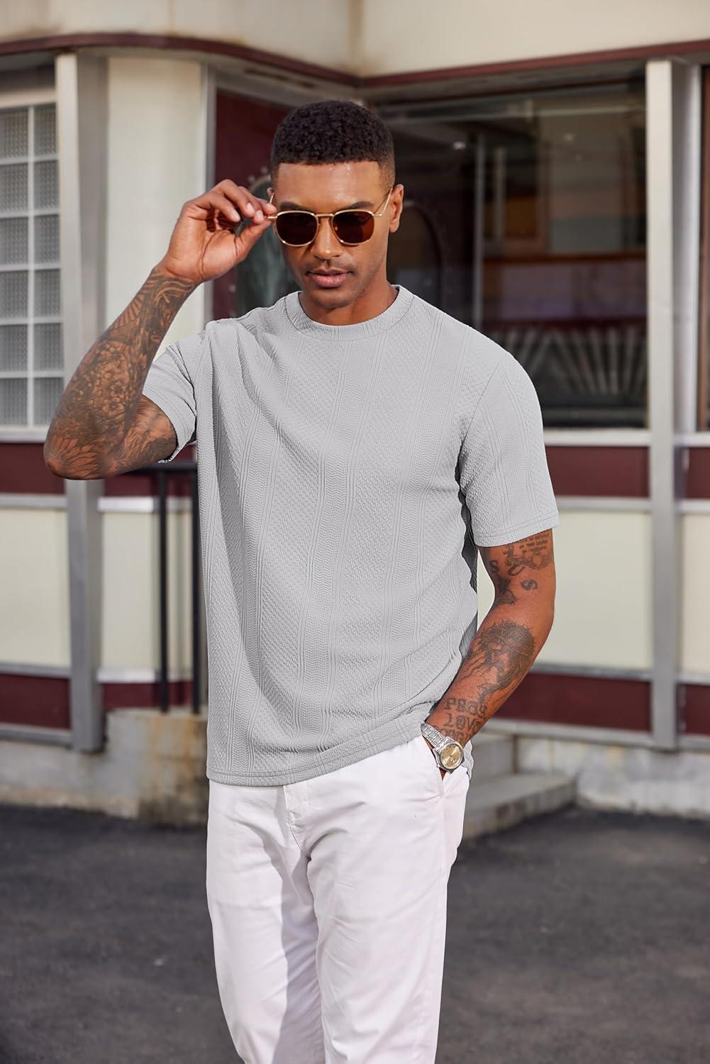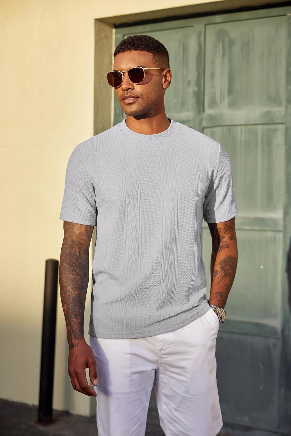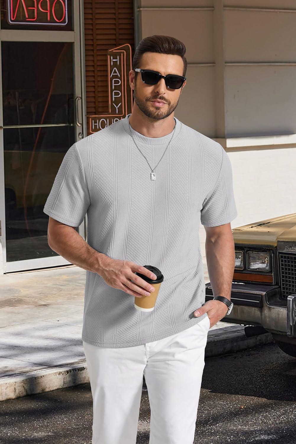 COOFANDY Men's T-Shirt Short Sleeve Crew Neck Textured Shirts Classic Knit Pullover Tees(Light Grey)
