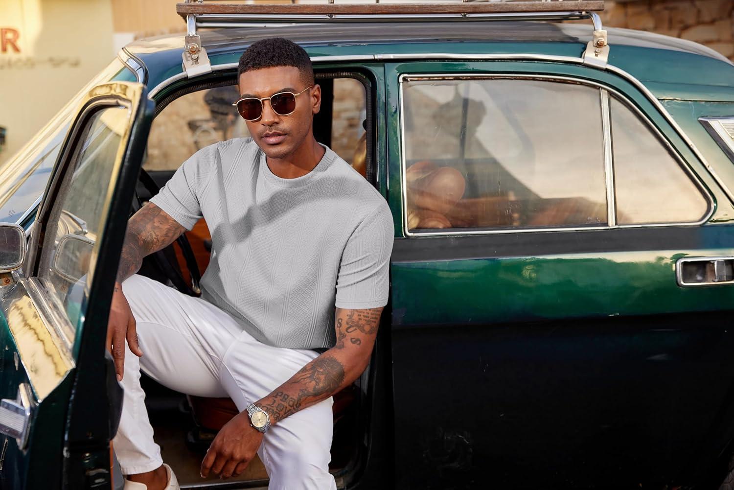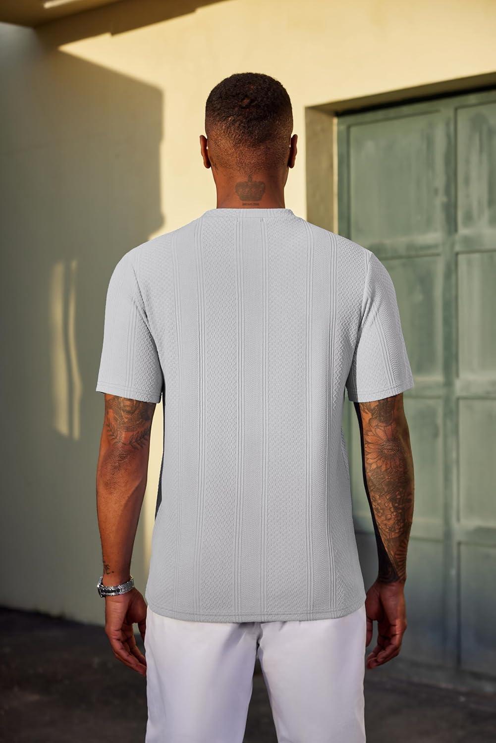 COOFANDY Men’s T-Shirt Short Sleeve Crew Neck Textured Shirts Classic Knit Pullover Tees(Light Grey)