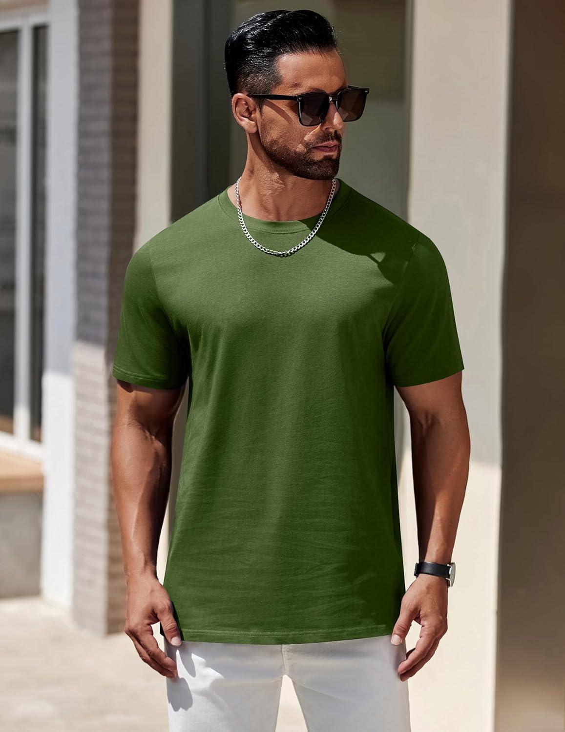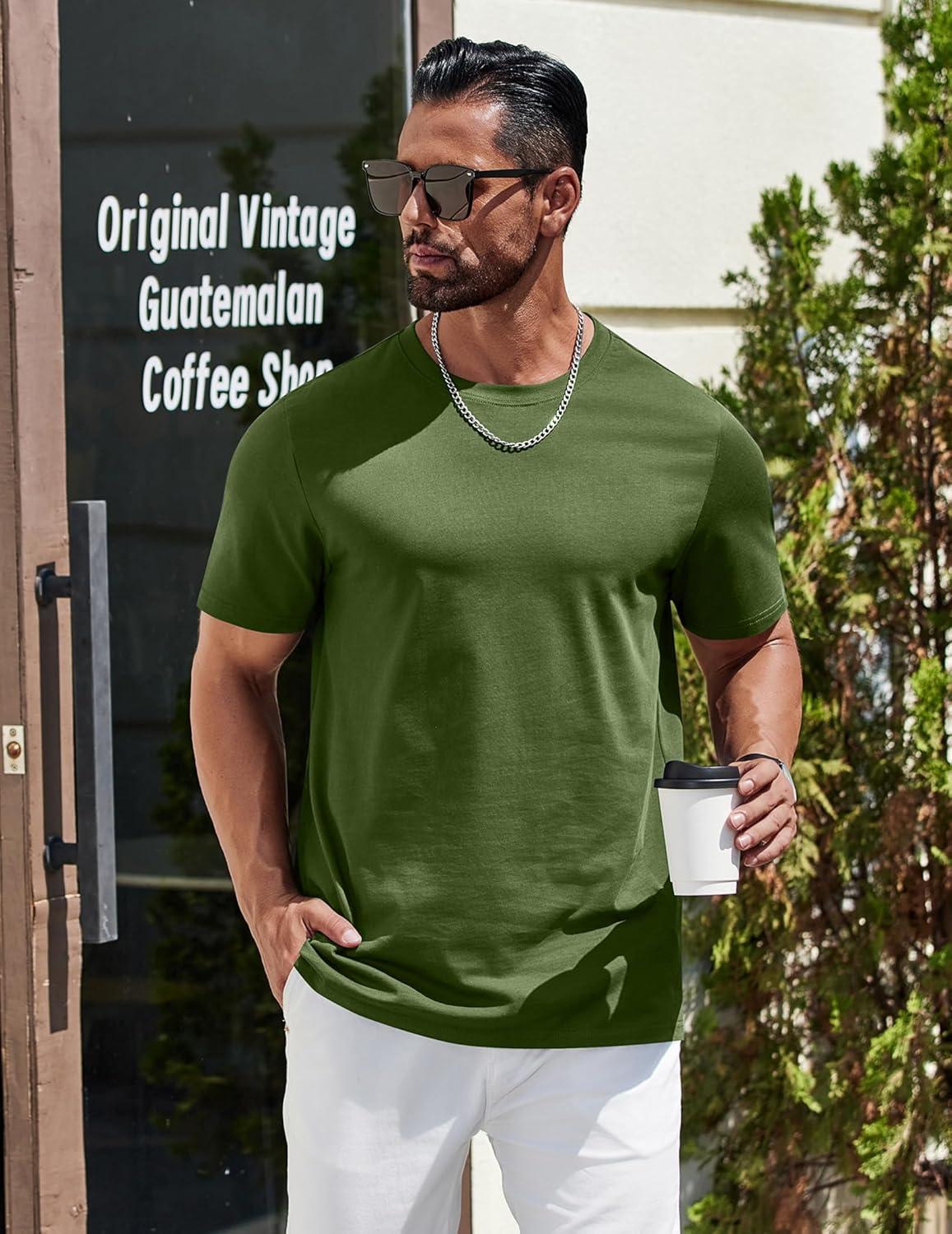 COOFANDY Mens T-Shirts 100% Cotton Heavyweight Premium Short Sleeve Shirt Crew Neck Basic Tshirt(Army Green)