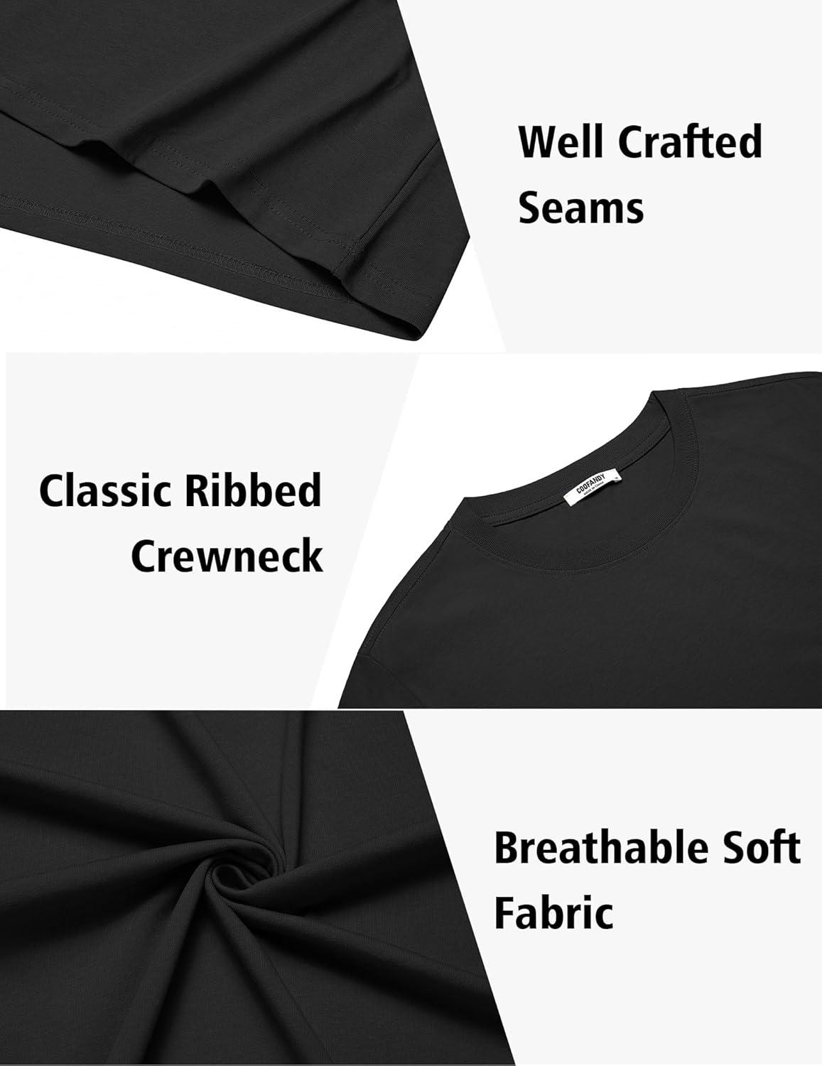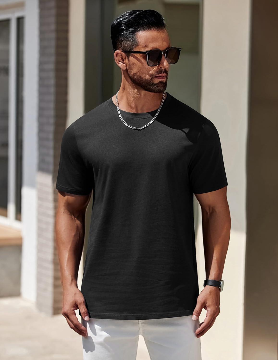 COOFANDY Mens T-Shirts 100% Cotton Heavyweight Premium Short Sleeve Shirt Crew Neck Basic Tshirt(Black)