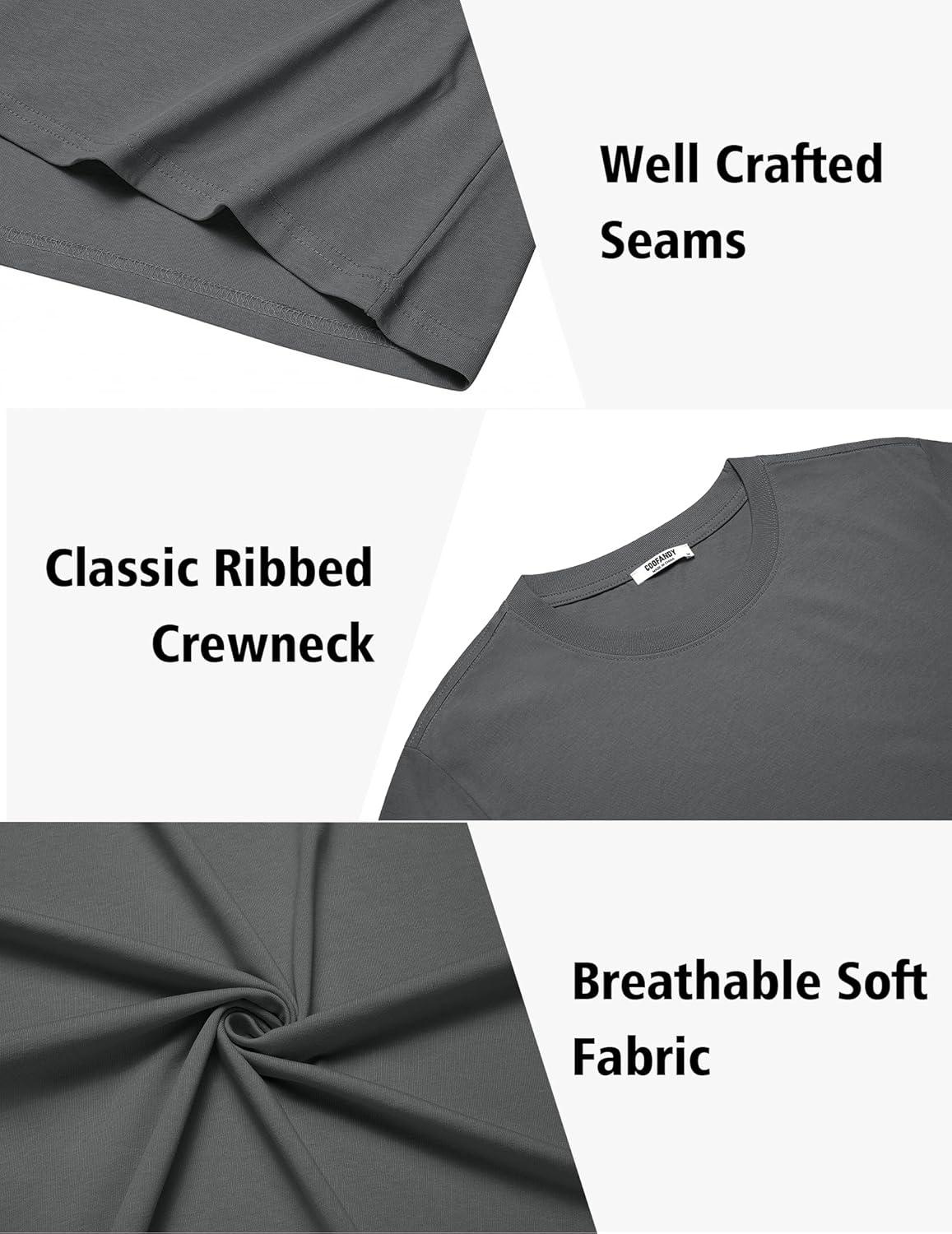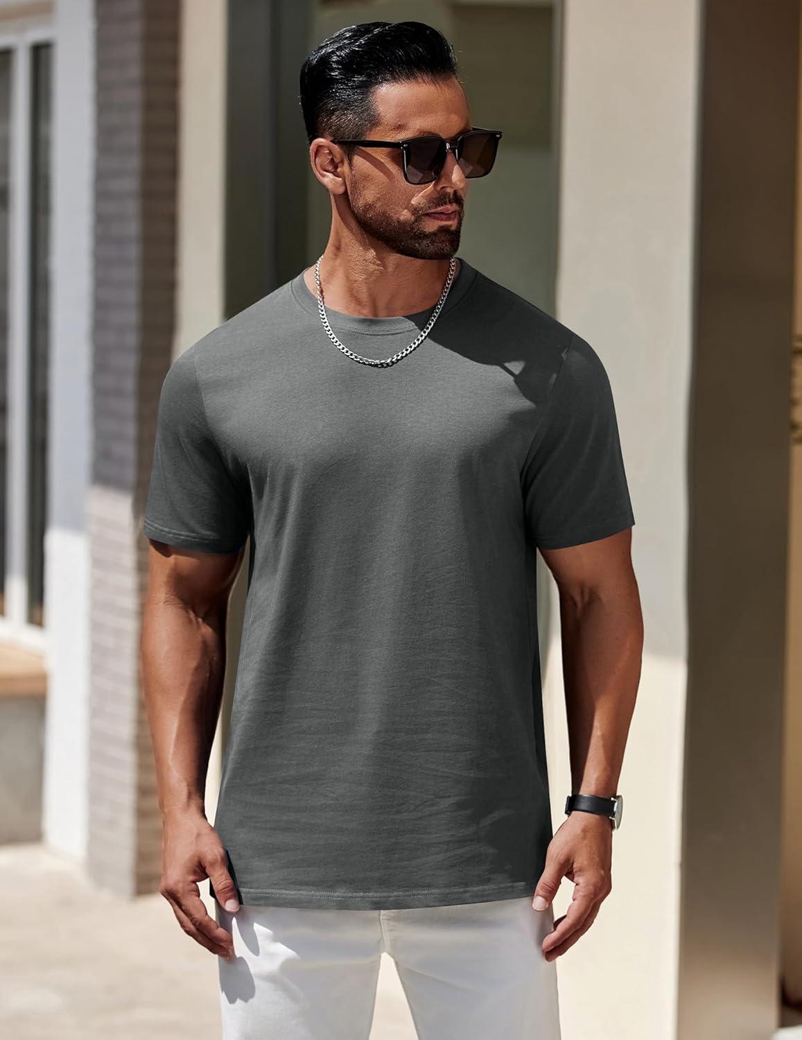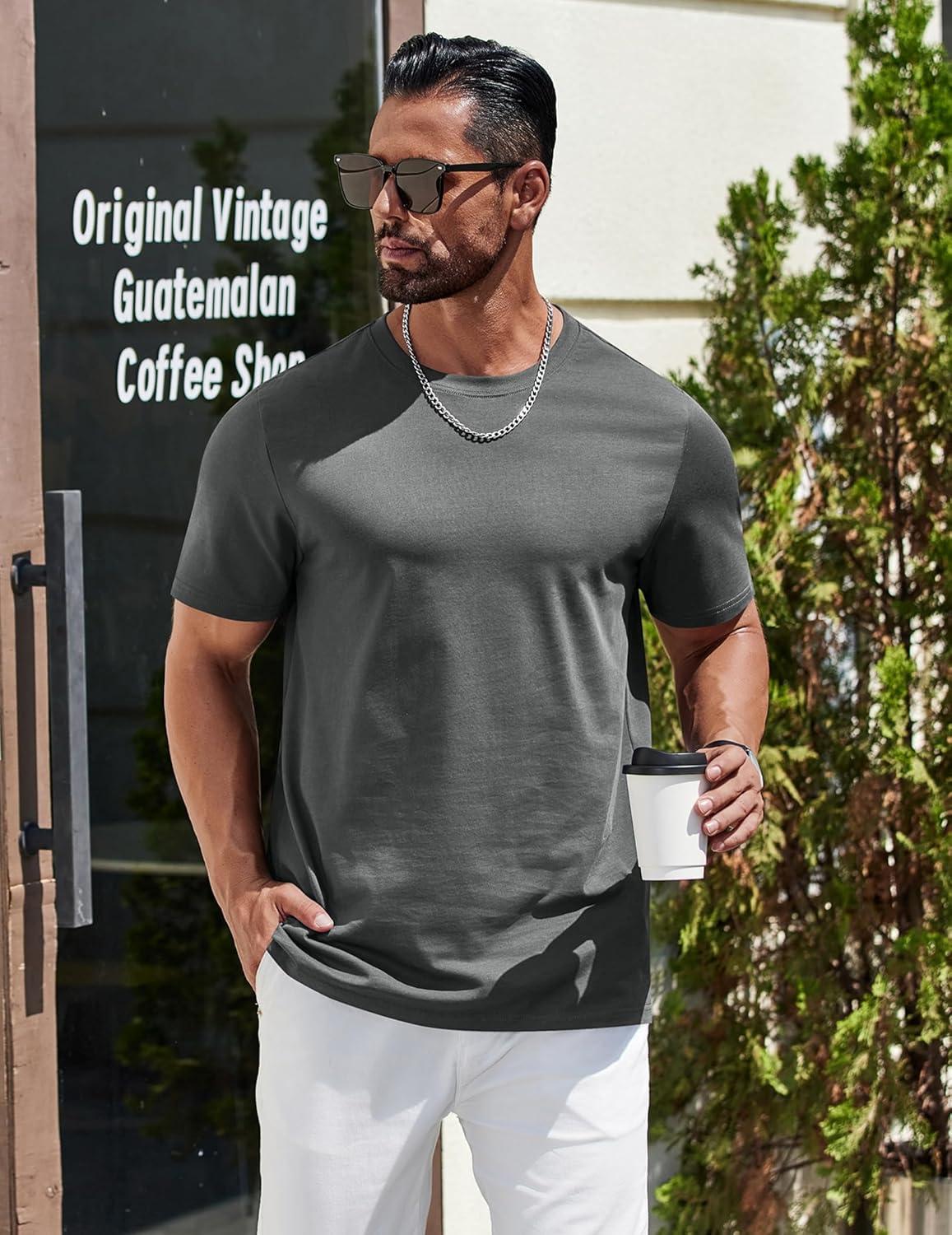 COOFANDY Mens T-Shirts 100% Cotton Heavyweight Premium Short Sleeve Shirt Crew Neck Basic Tshirt(Dark Green Grey)