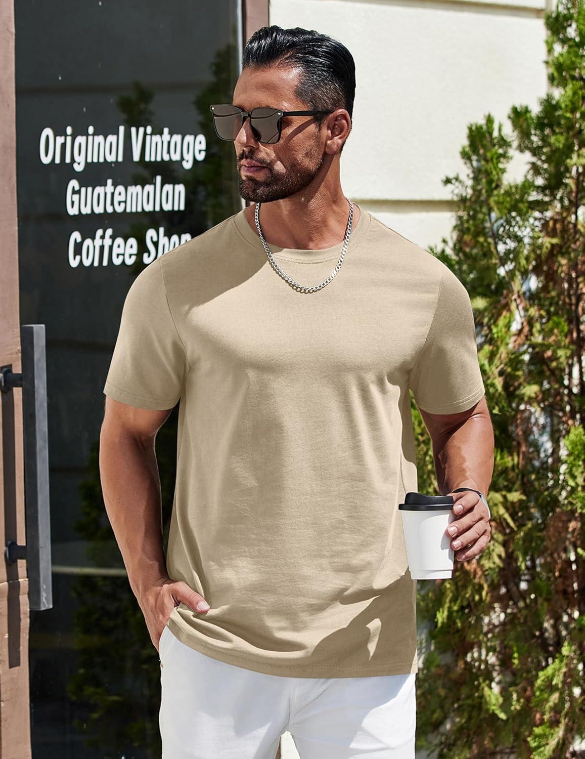 COOFANDY Mens T-Shirts 100% Cotton Heavyweight Premium Short Sleeve Shirt Crew Neck Basic Tshirt(Khaki)
