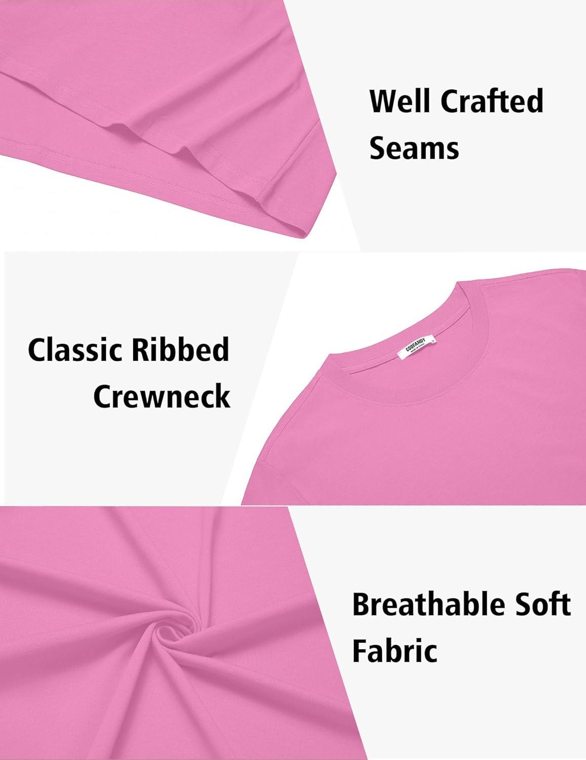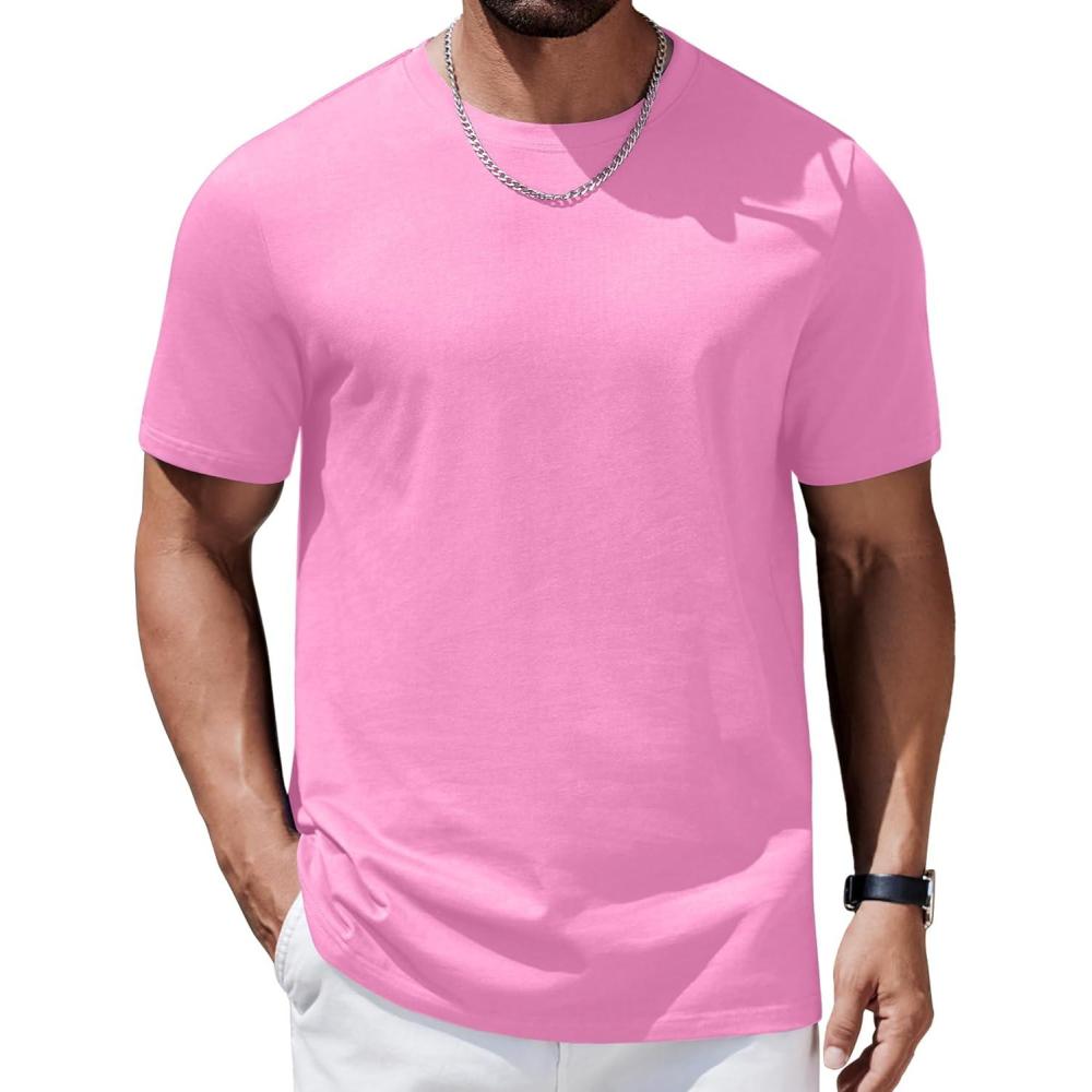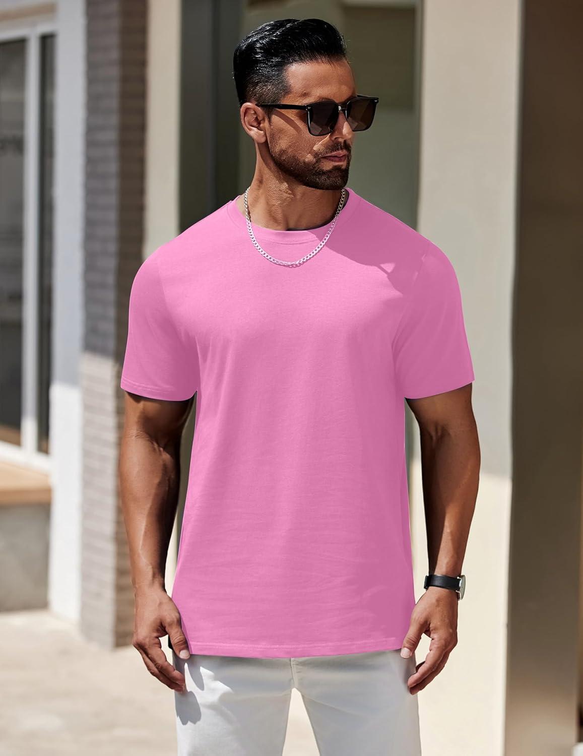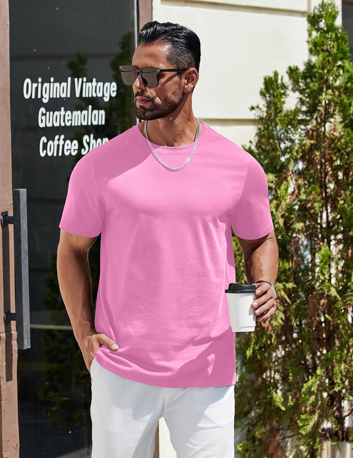 COOFANDY Mens T-Shirts 100% Cotton Heavyweight Premium Short Sleeve Shirt Crew Neck Basic Tshirt(Pink)