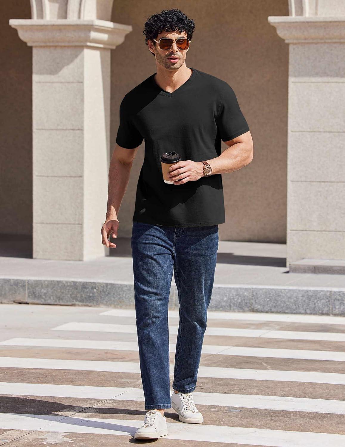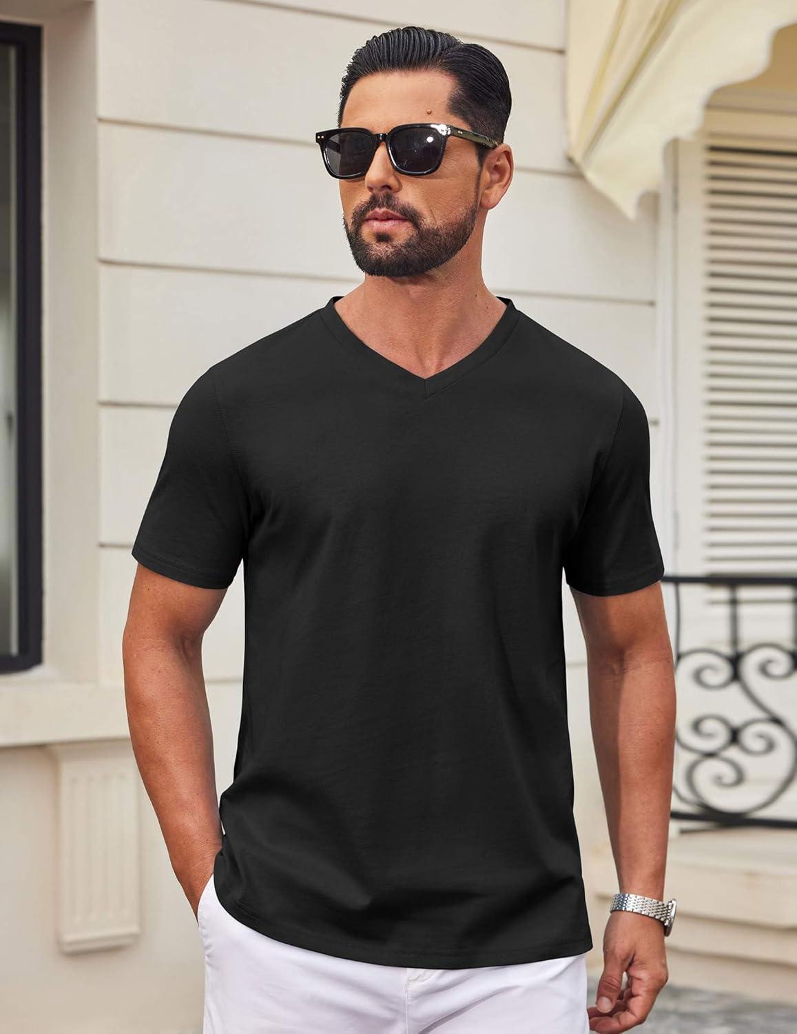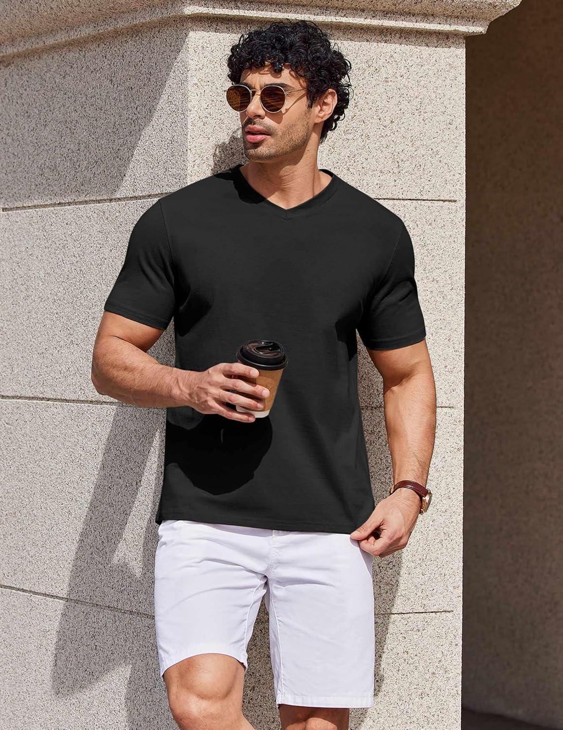 COOFANDY Mens T Shirts 100% Cotton V Neck Tee Shirt Plain Short Sleeve Casual Shirts(Black)