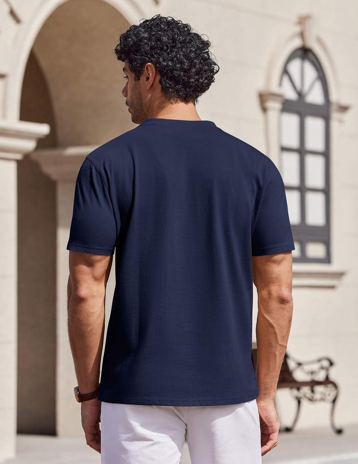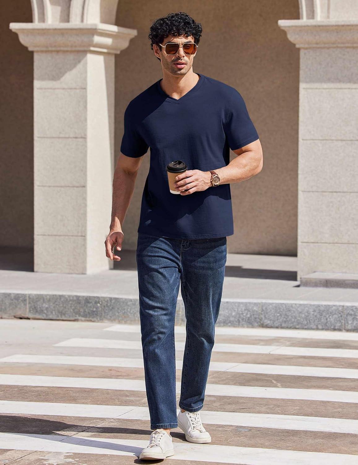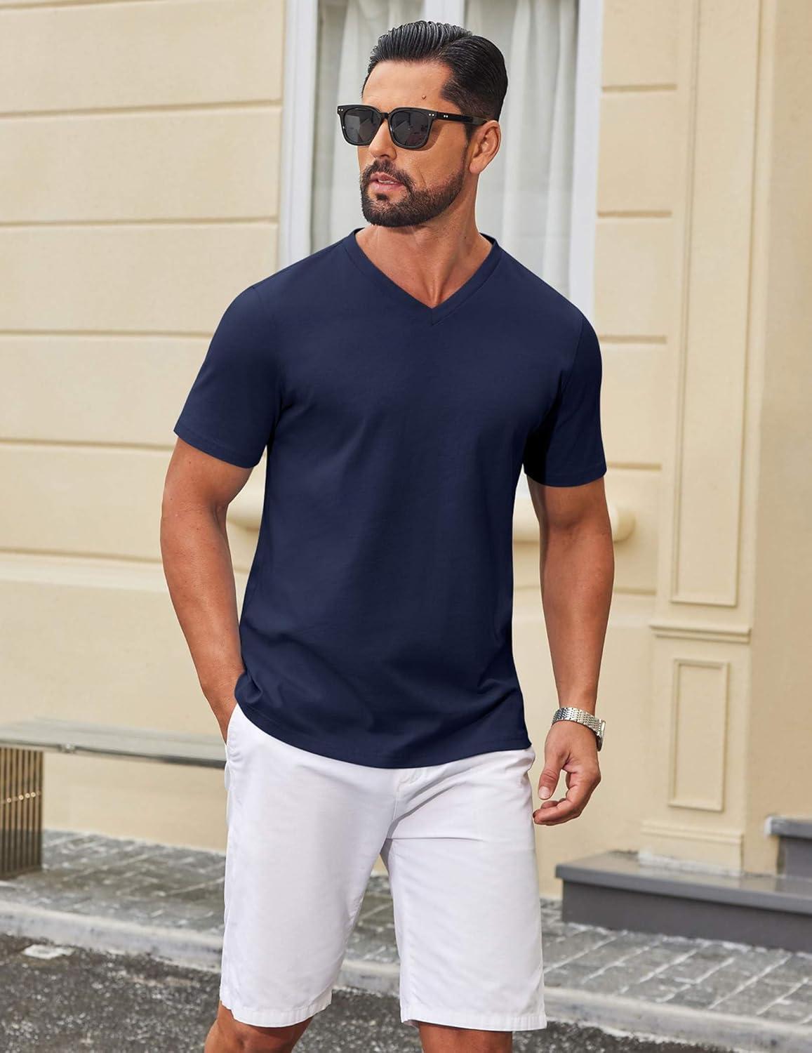 COOFANDY Mens T Shirts 100% Cotton V Neck Tee Shirt Plain Short Sleeve Casual Shirts(Navy Blue)