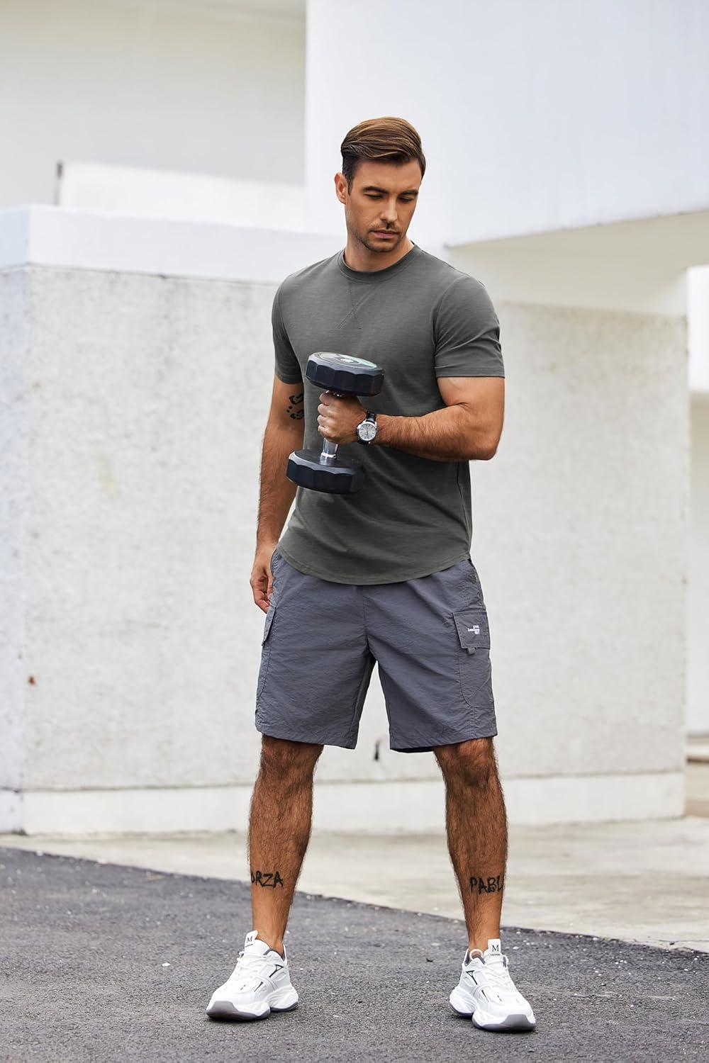 COOFANDY Mens T Shirts Casual Short Sleeve Cotton Tee Shirts Hipster Hip Hop Longline T-Shirt Basic Summer Tops(One Piece- Grey)