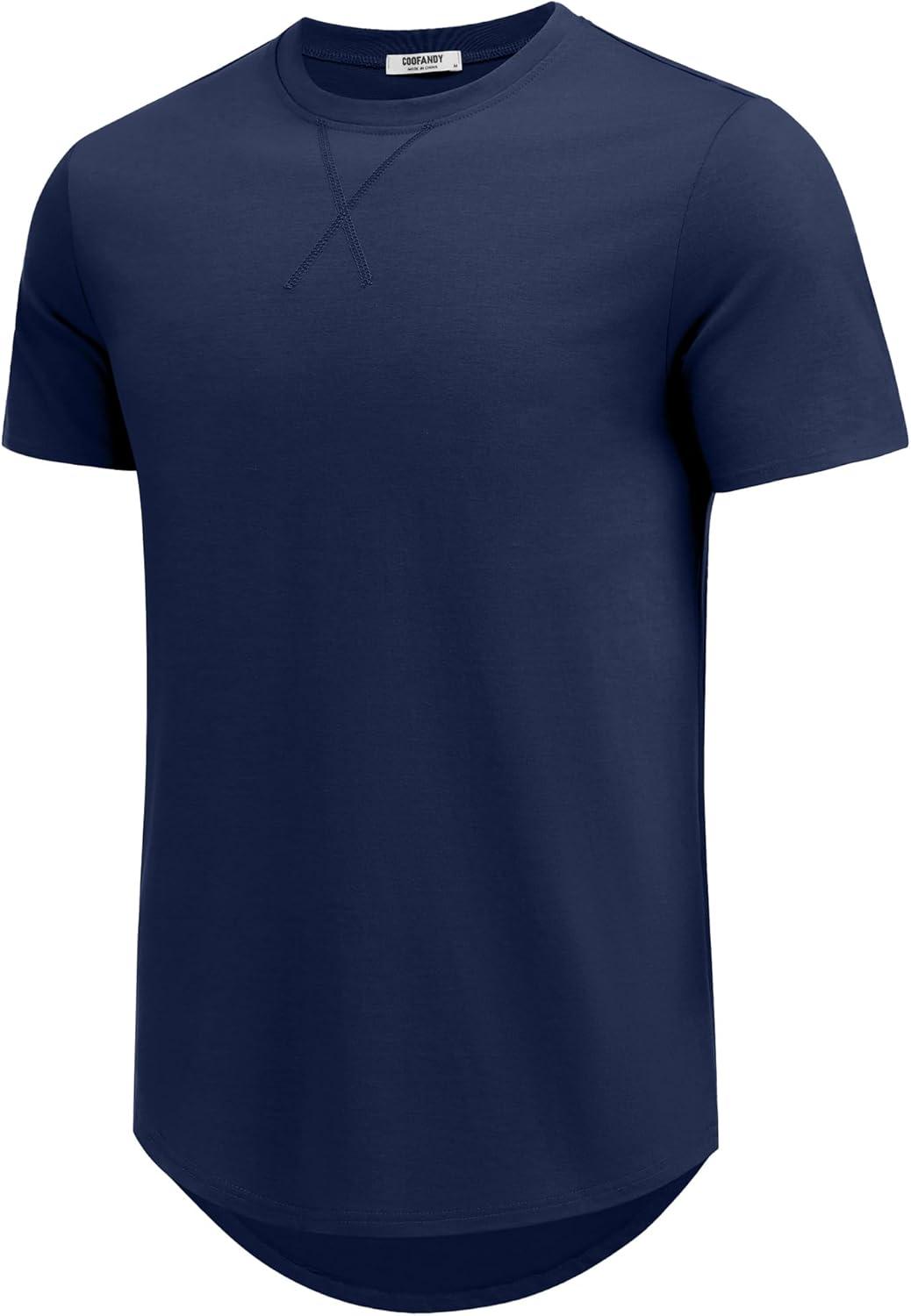 COOFANDY Mens T Shirts Casual Short Sleeve Cotton Tee Shirts Hipster Hip Hop Longline T-Shirt Basic Summer Tops(One Piece- Navy Blue)