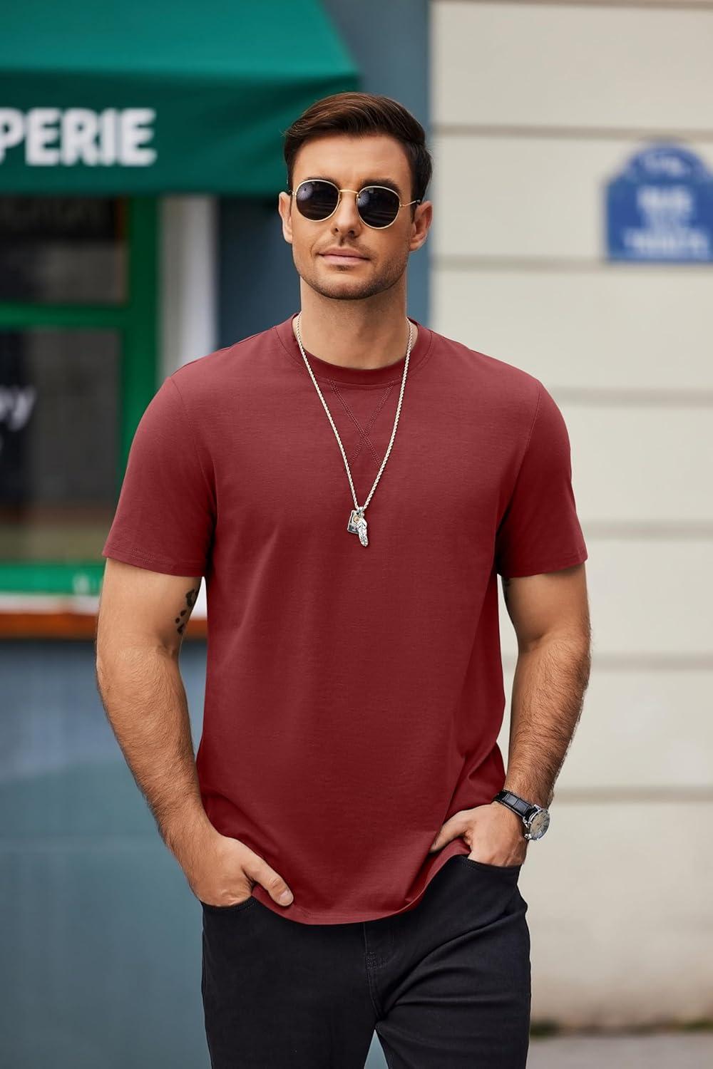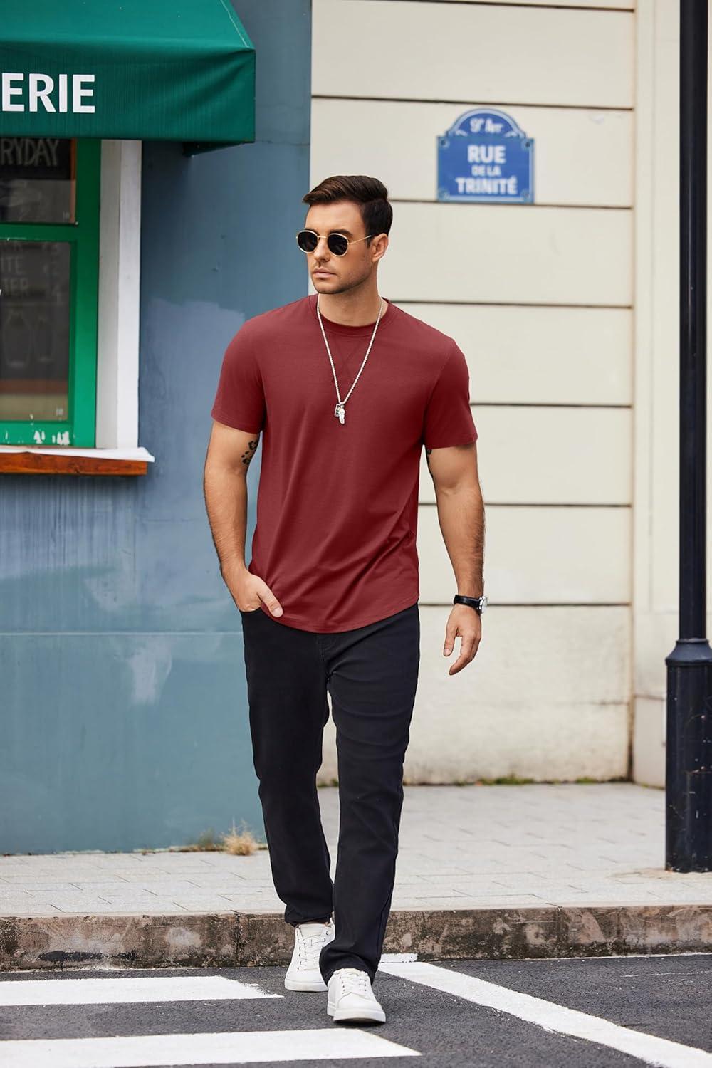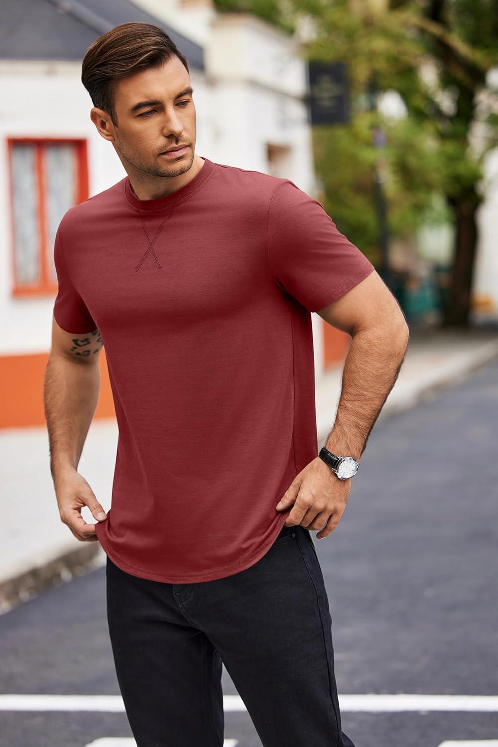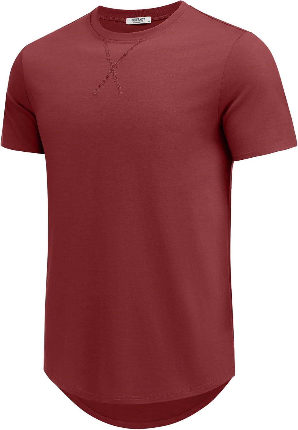 COOFANDY Mens T Shirts Casual Short Sleeve Cotton Tee Shirts Hipster Hip Hop Longline T-Shirt Basic Summer Tops(One Piece- Wine Red)