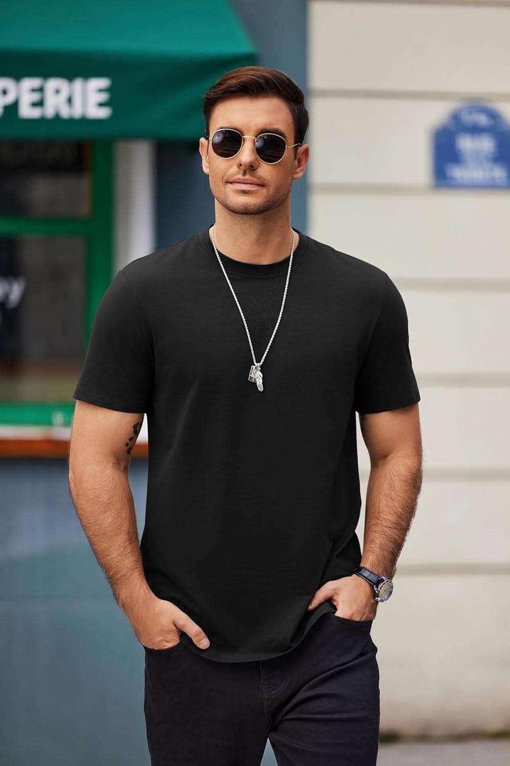 COOFANDY Mens T Shirts Casual Short Sleeve Cotton Tee Shirts Hipster Hip Hop Longline T-Shirt Basic Summer Tops(Two Pack- Black + Dark Grey)