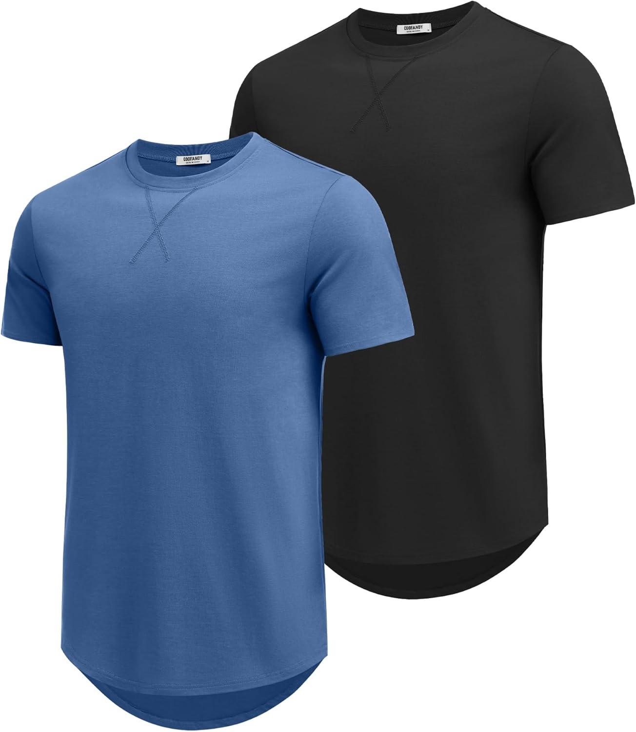 COOFANDY Mens T Shirts Casual Short Sleeve Cotton Tee Shirts Hipster Hip Hop Longline T-Shirt Basic Summer Tops(Two Pack- Black + Blue)
