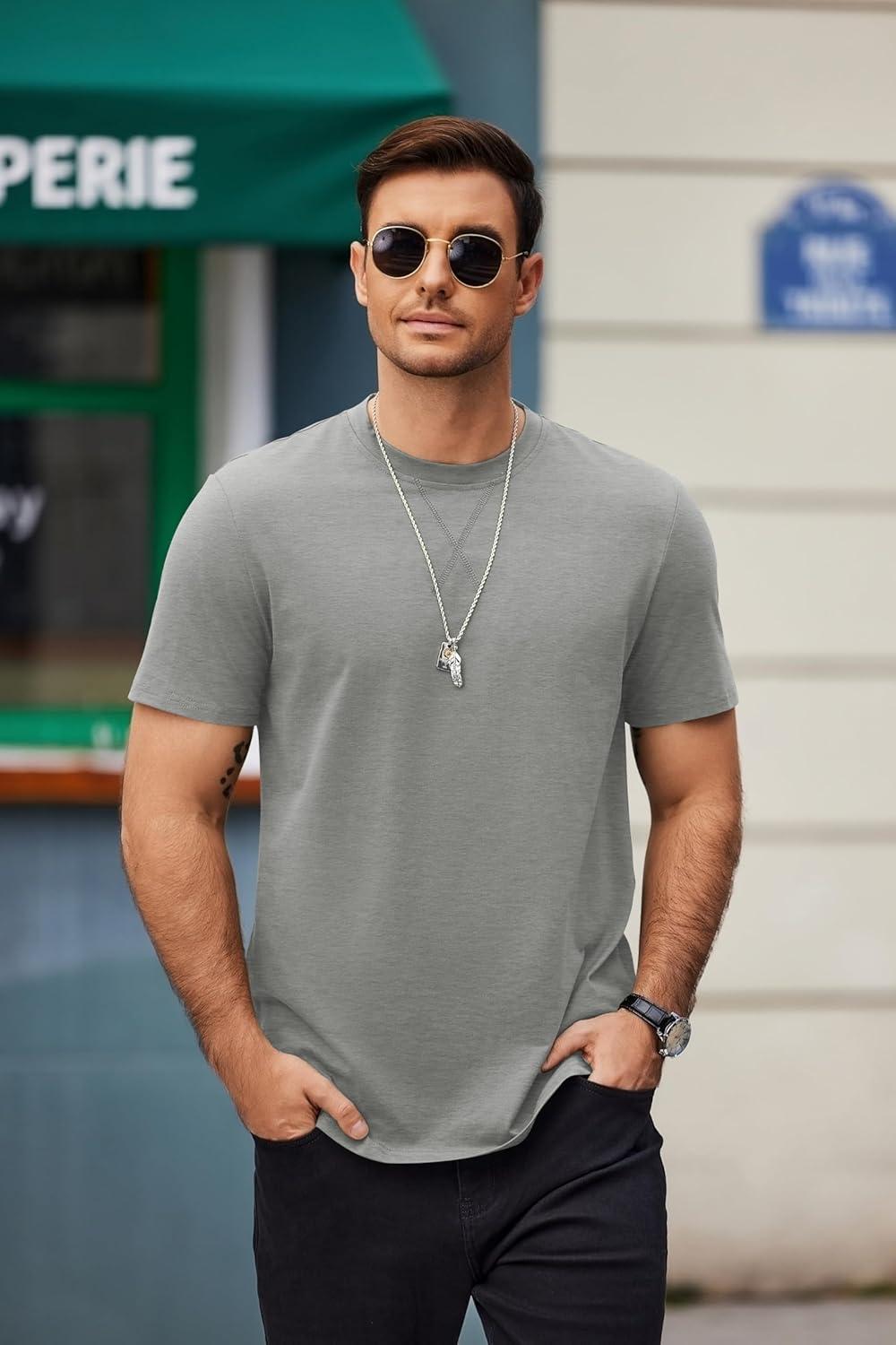 COOFANDY Mens T Shirts Casual Short Sleeve Cotton Tee Shirts Hipster Hip Hop Longline T-Shirt Basic Summer Tops(Two Pack- Black + Light Grey)