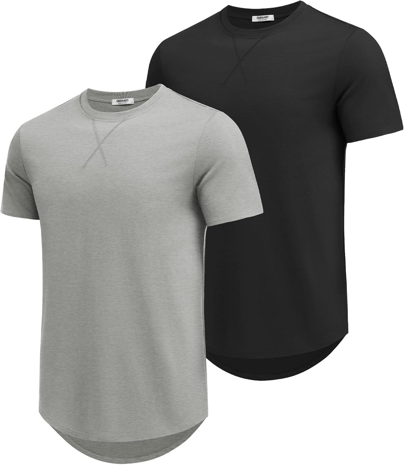 COOFANDY Mens T Shirts Casual Short Sleeve Cotton Tee Shirts Hipster Hip Hop Longline T-Shirt Basic Summer Tops(Two Pack- Black + Grey)