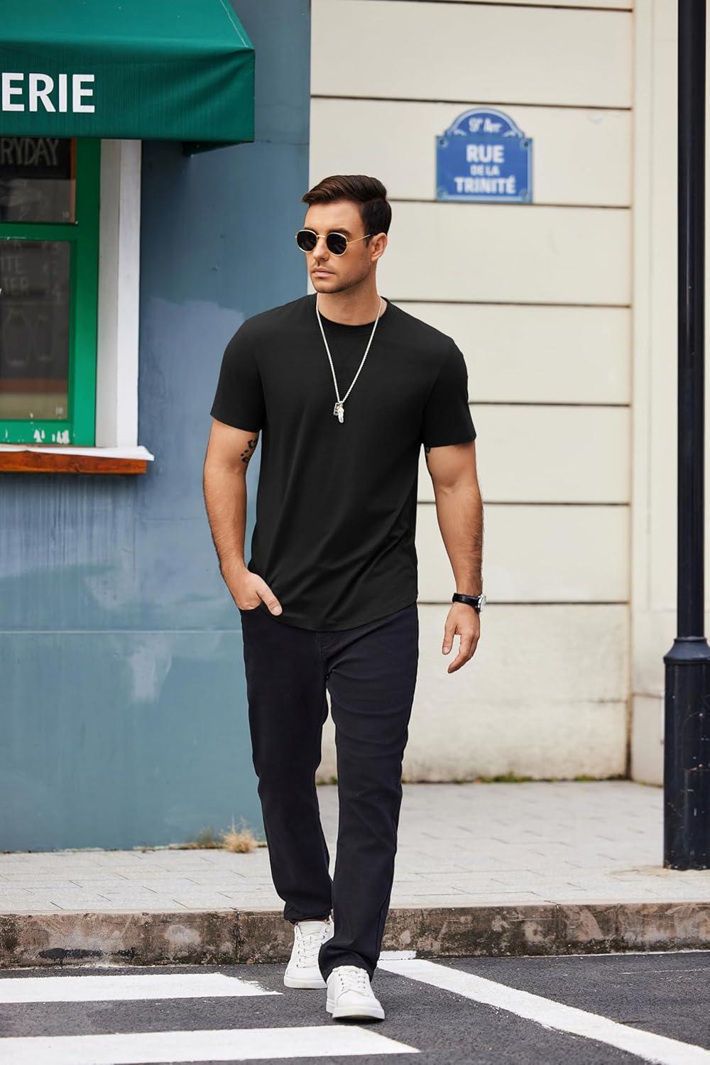 COOFANDY Mens T Shirts Casual Short Sleeve Cotton Tee Shirts Hipster Hip Hop Longline T-Shirt Basic Summer Tops(Two Pack- Black + Light Grey)
