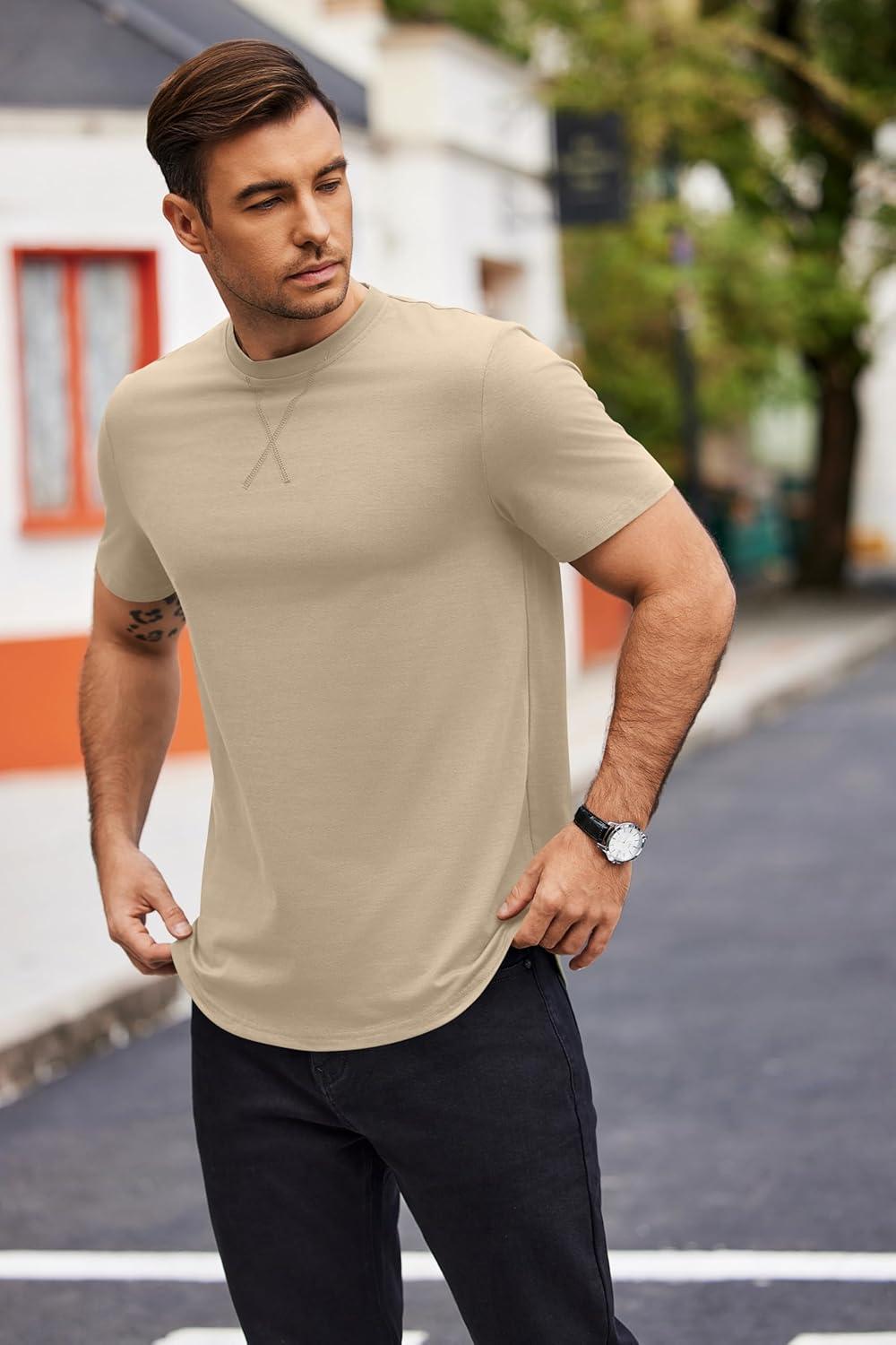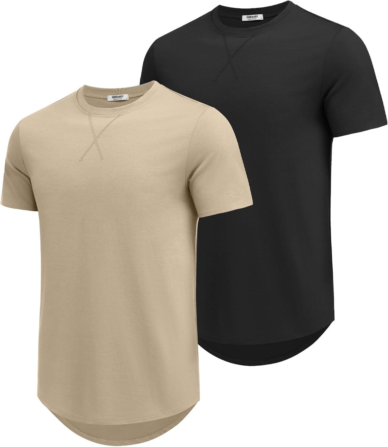 COOFANDY Mens T Shirts Casual Short Sleeve Cotton Tee Shirts Hipster Hip Hop Longline T-Shirt Basic Summer Tops(Two Pack- Black + Light Khaki)