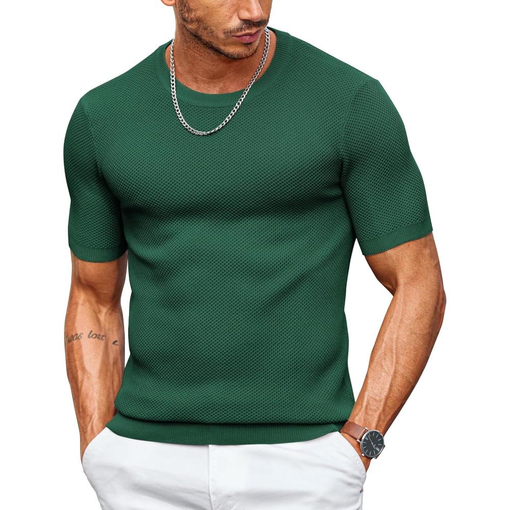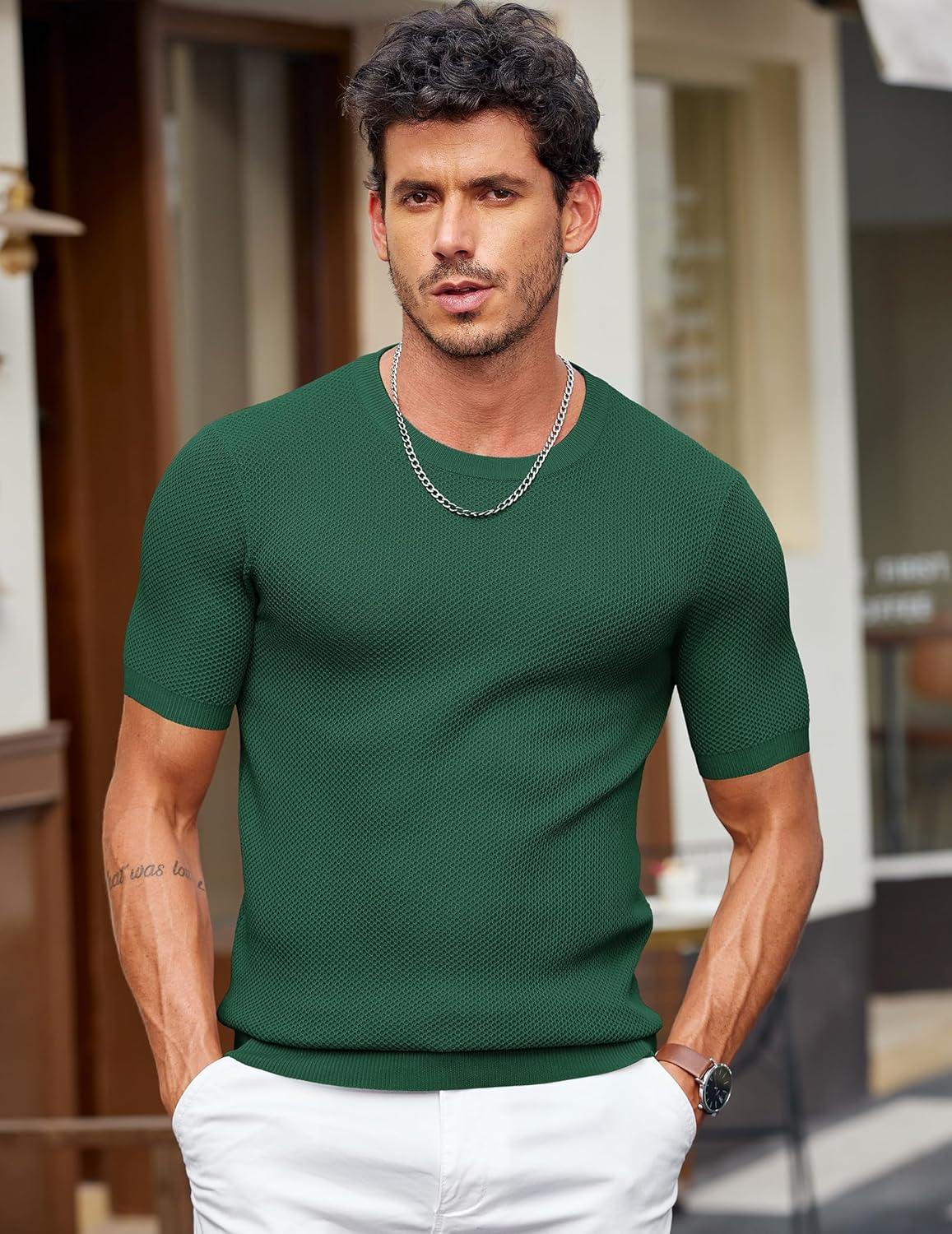 COOFANDY Men's T- Shirts Casual Short Sleeve Crewneck Shirts Solid Textured Knit Pullover Tees(Green)